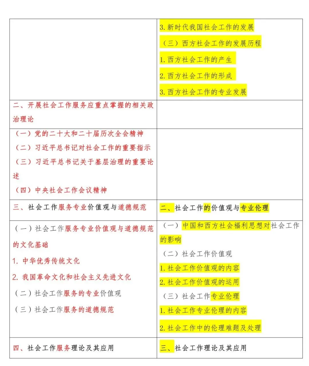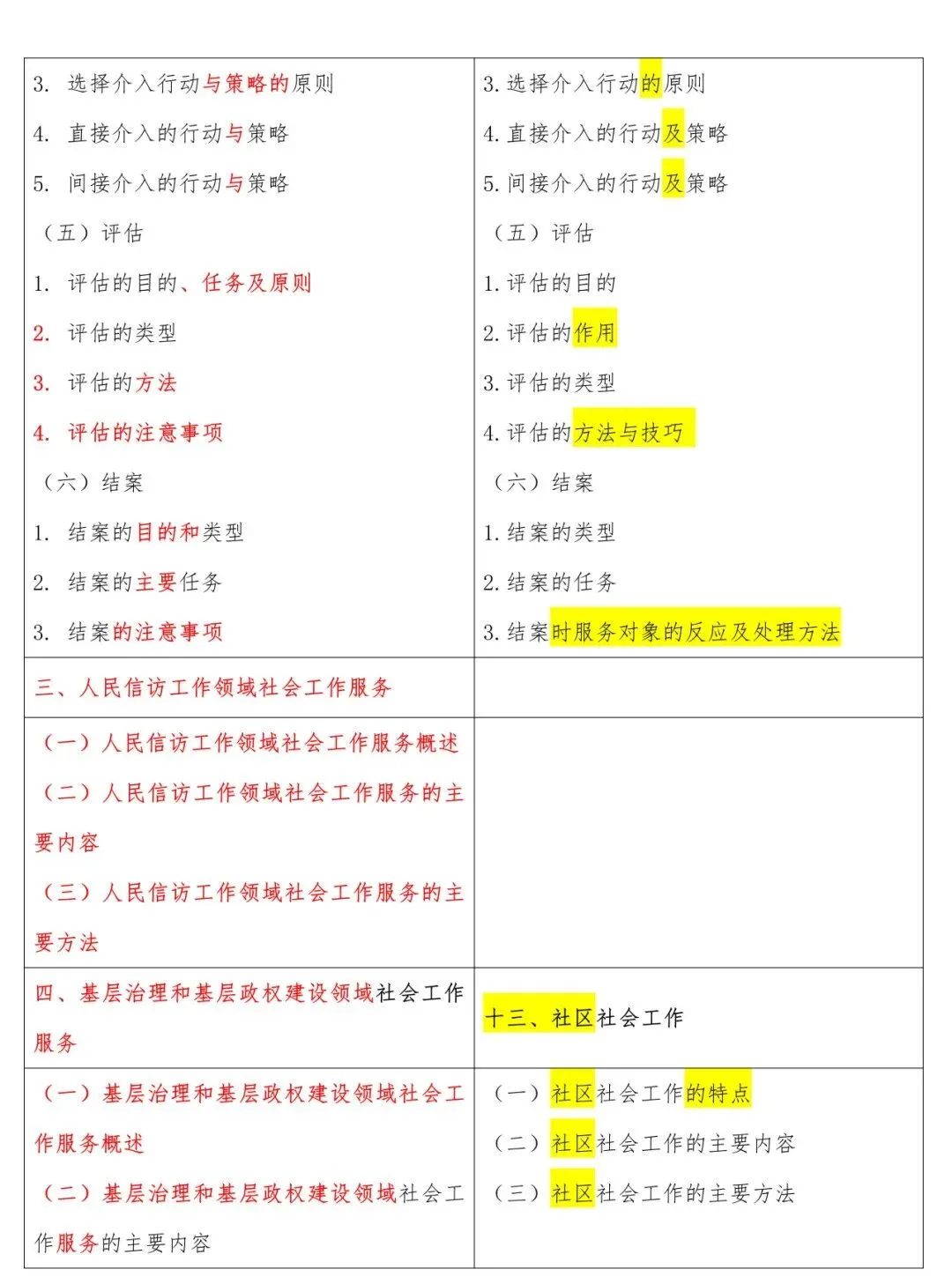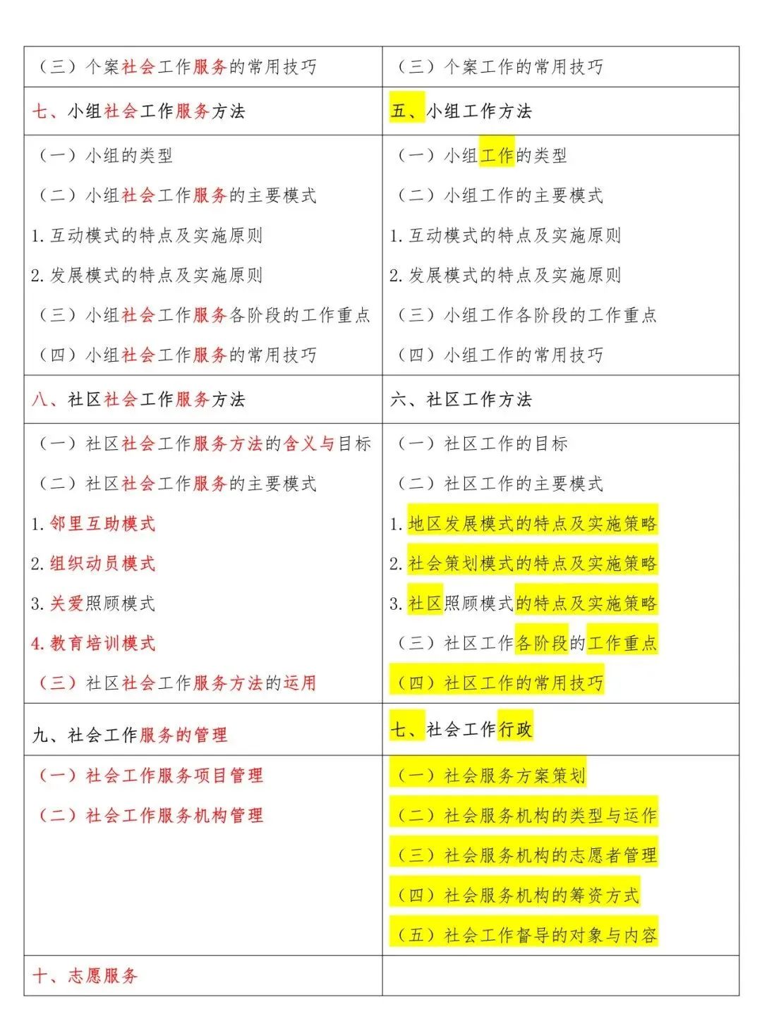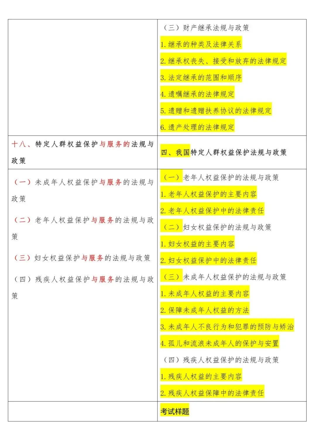 高级新旧大纲对照表