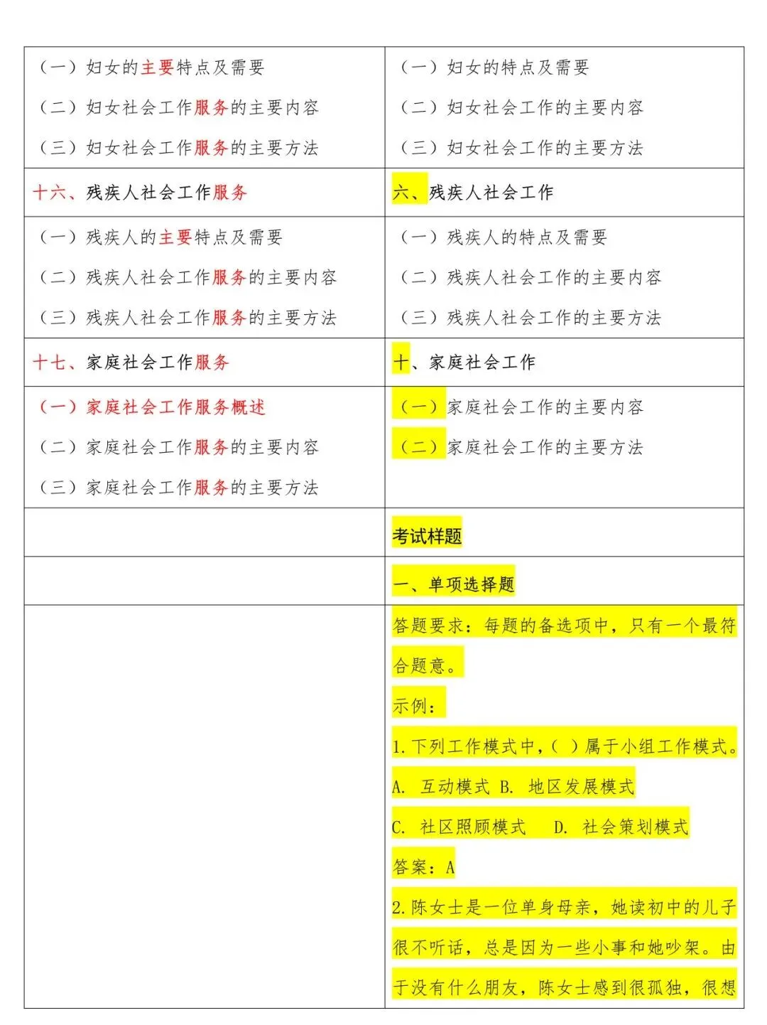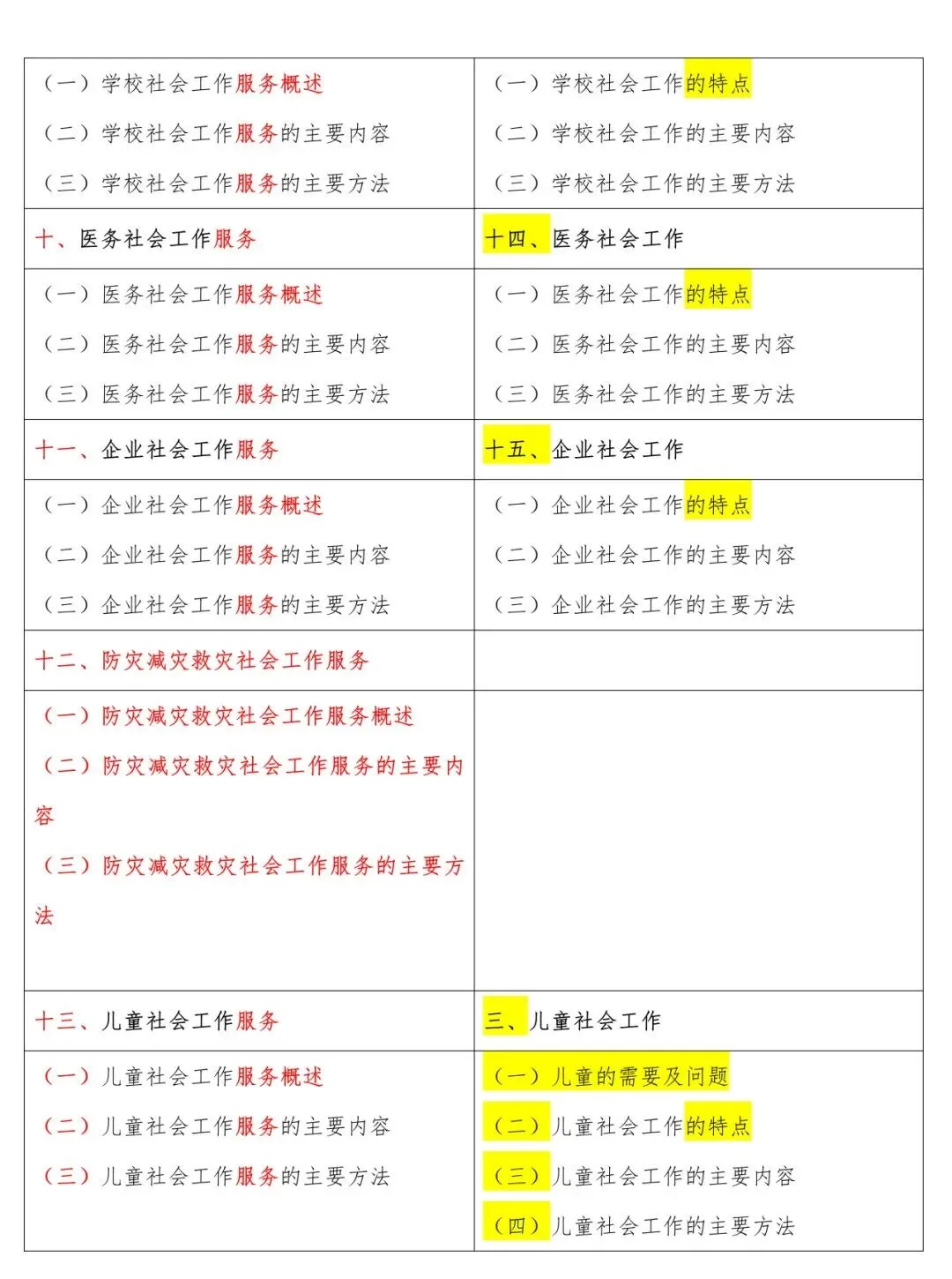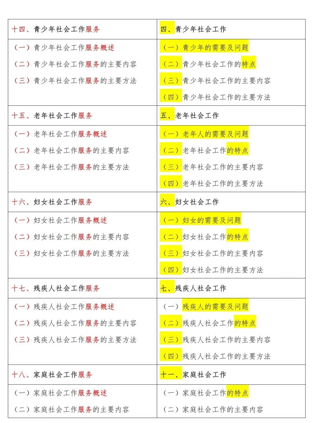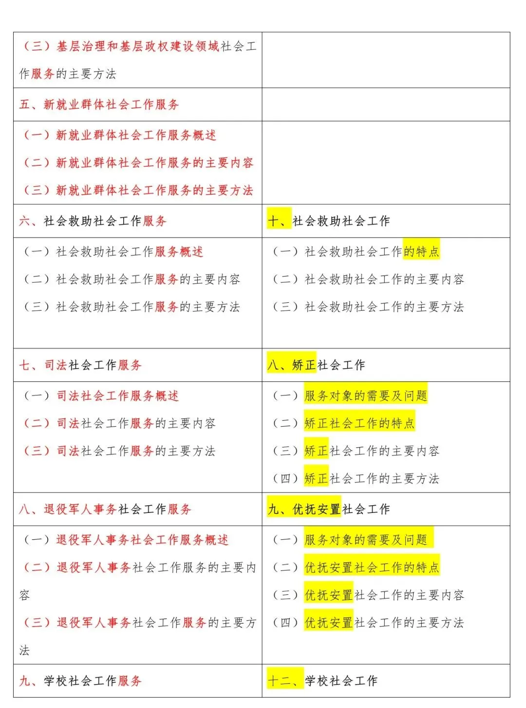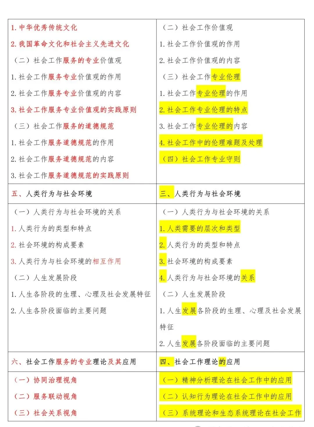高级新旧大纲对照表