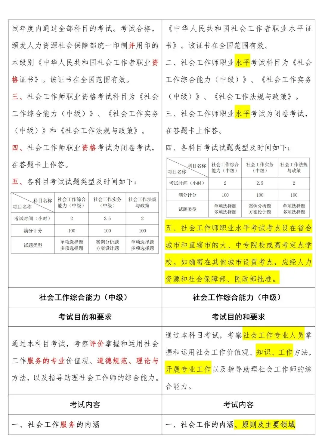中级新旧大纲对照表