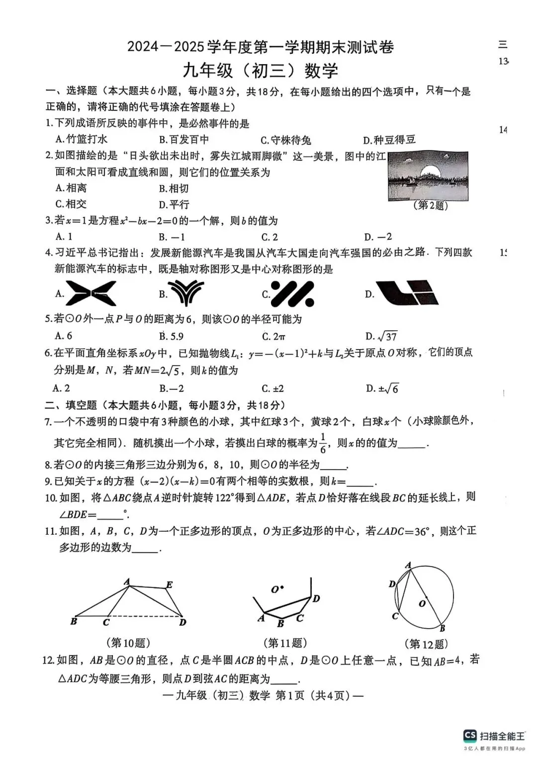 9年级试卷部分展示
