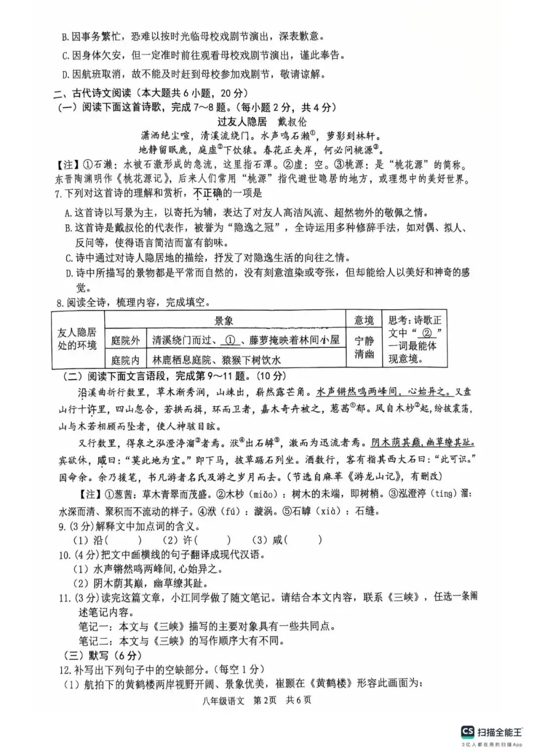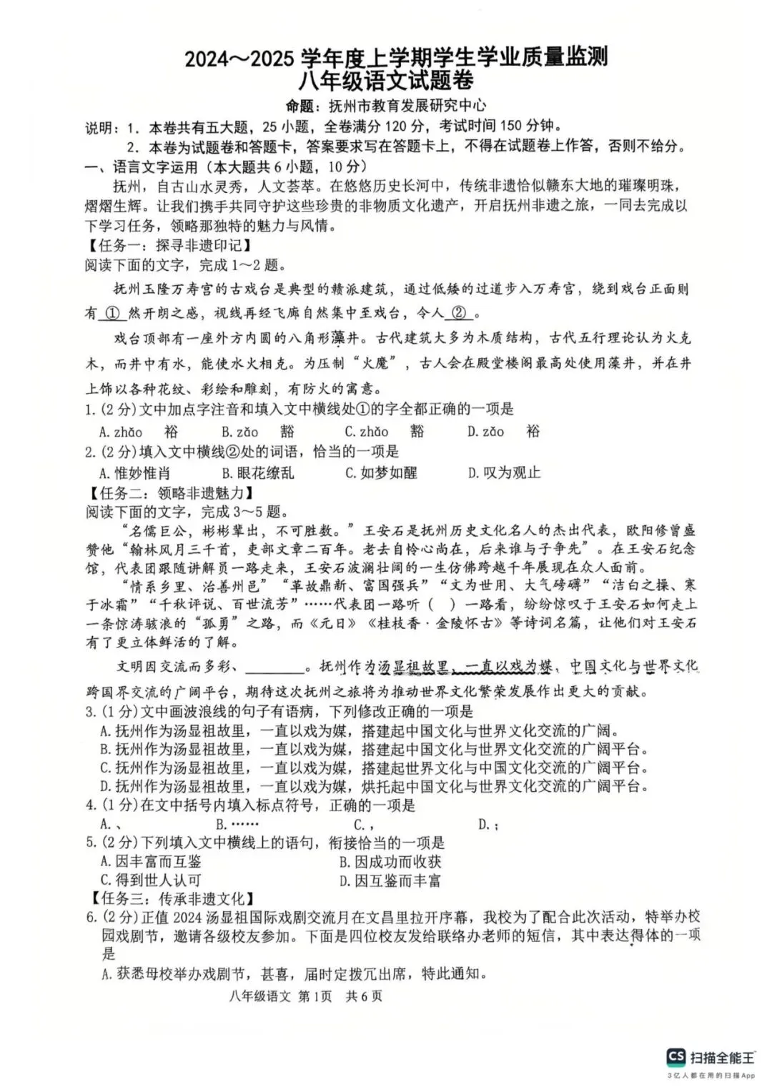 8年级试卷部分展示