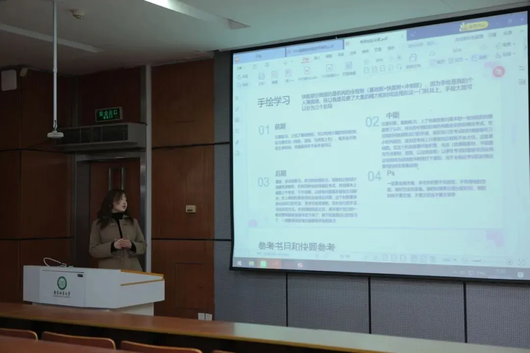 景观艺术设计专业研一学生李嘉欣,空间环境与室内设计专业研一学生马婧从备考经历出发,分享了考研规划与复习方法,鼓励学弟学妹积极准备。