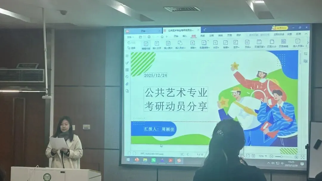12月29日下午,在公共艺术与数字媒体艺术专场动员会上,公共艺术系主任李雪艳强调学科的社会属性与价值导向,指出升学有助于深化对公共性、社区参与等议题的理解,并分享自身学历发展心得。29日晚,视觉传达设计系主任何佳在专场动员会上指出,行业对品牌视觉、文化创意人才需求持续增长,升学能显著提升学生在媒介融合背景下的设计整合能力。