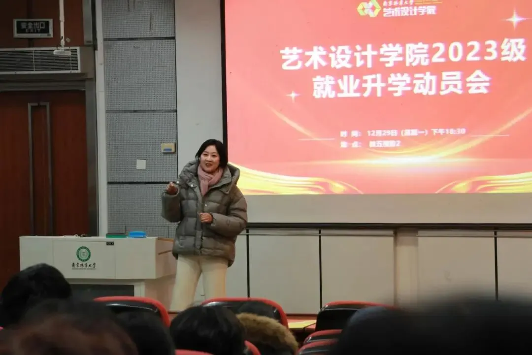 12月29日下午,在公共艺术与数字媒体艺术专场动员会上,公共艺术系主任李雪艳强调学科的社会属性与价值导向,指出升学有助于深化对公共性、社区参与等议题的理解,并分享自身学历发展心得。29日晚,视觉传达设计系主任何佳在专场动员会上指出,行业对品牌视觉、文化创意人才需求持续增长,升学能显著提升学生在媒介融合背景下的设计整合能力。