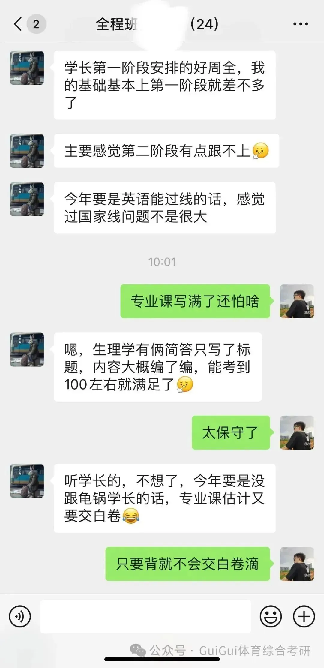 我是龟锅学长,武体考研专业课的辅导老师。从20年考研上岸到现在,已指导了非常多的学员斩获高分,成功上岸武体!今年的全程班有着更完善的课程规划,更丰富的教学经验,更轻松的备考氛围。只要你努力坚持,和大家一起跟着我认真学习,必能一战上岸!