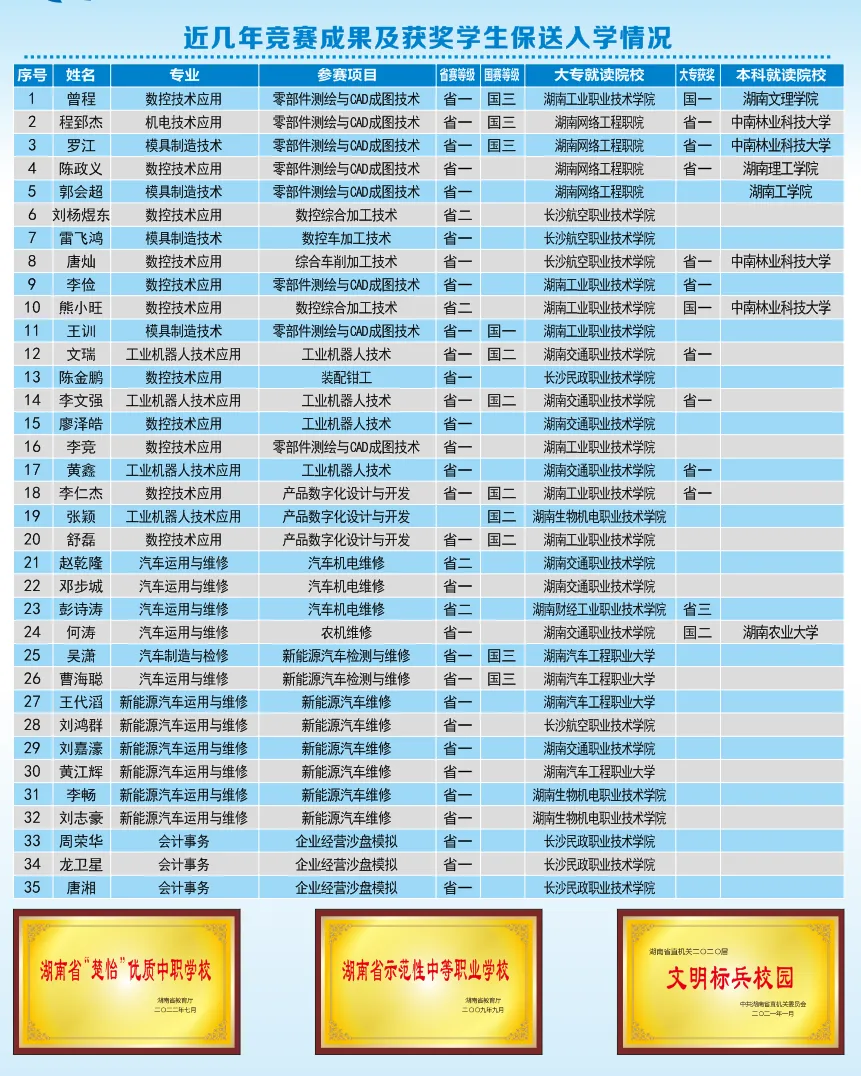 多年来,湖南省工业贸易学校的升学成果斐然,每年对口高考升学率均位居全省同类院校前列,大批学子成功考入湖南农业大学、湖南工业职业技术学院、长沙民政职业技术学院等优质院校,实现了从中职到高职、本科的学历跃升,开启了人生新征程。不少毕业生凭借扎实的专业功底和良好的综合素养,在各行各业崭露头角,成为企业骨干力量,用实力印证了“选对校,未来没烦恼”的真谛。