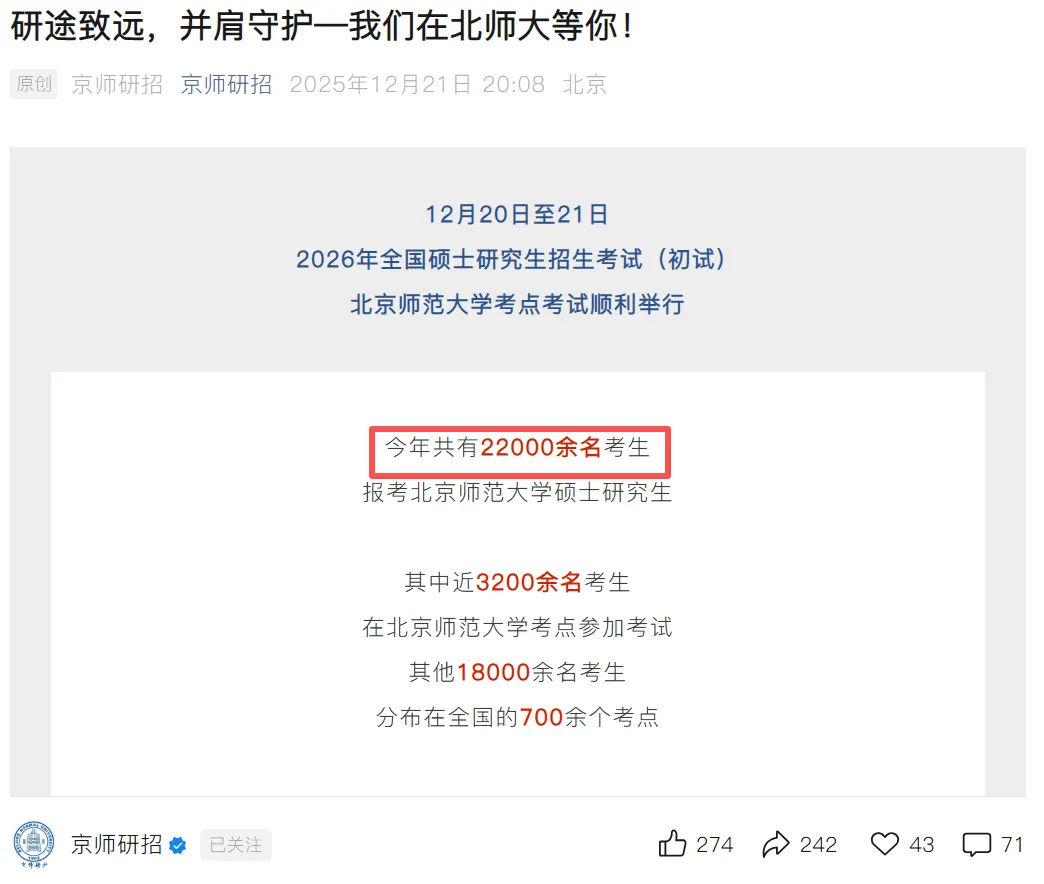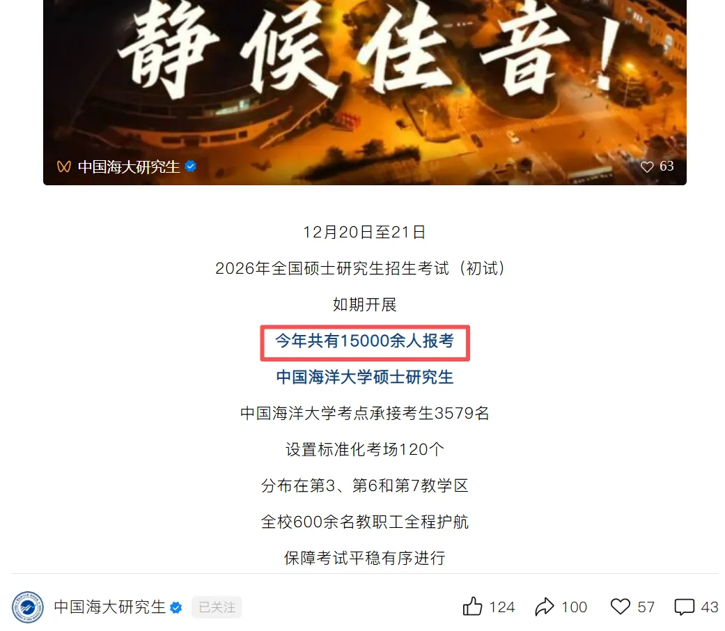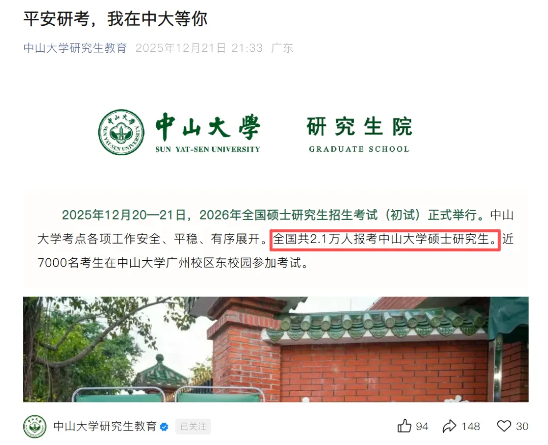 2026考研初试结束,不少院校陆续公布了2026考研最终报考人数,一些院校竞争还是非常激烈,报名人数近3万,一起来看看。
