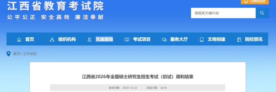 江西教育考试院官方发布的文章显示:本次考试评卷统分工作预计于2026年2月中旬前完成,2月24日后由招生单位公布考生成绩。