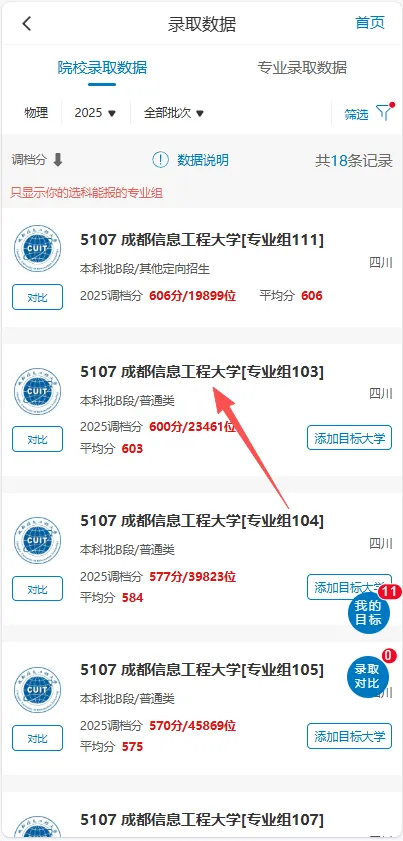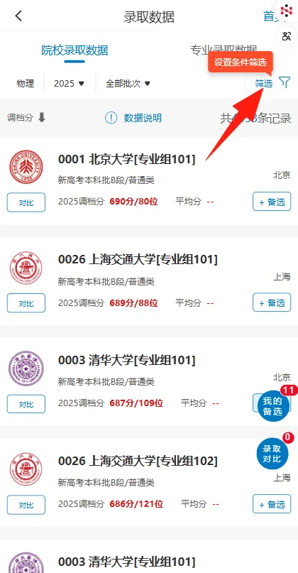 点击院校专业组