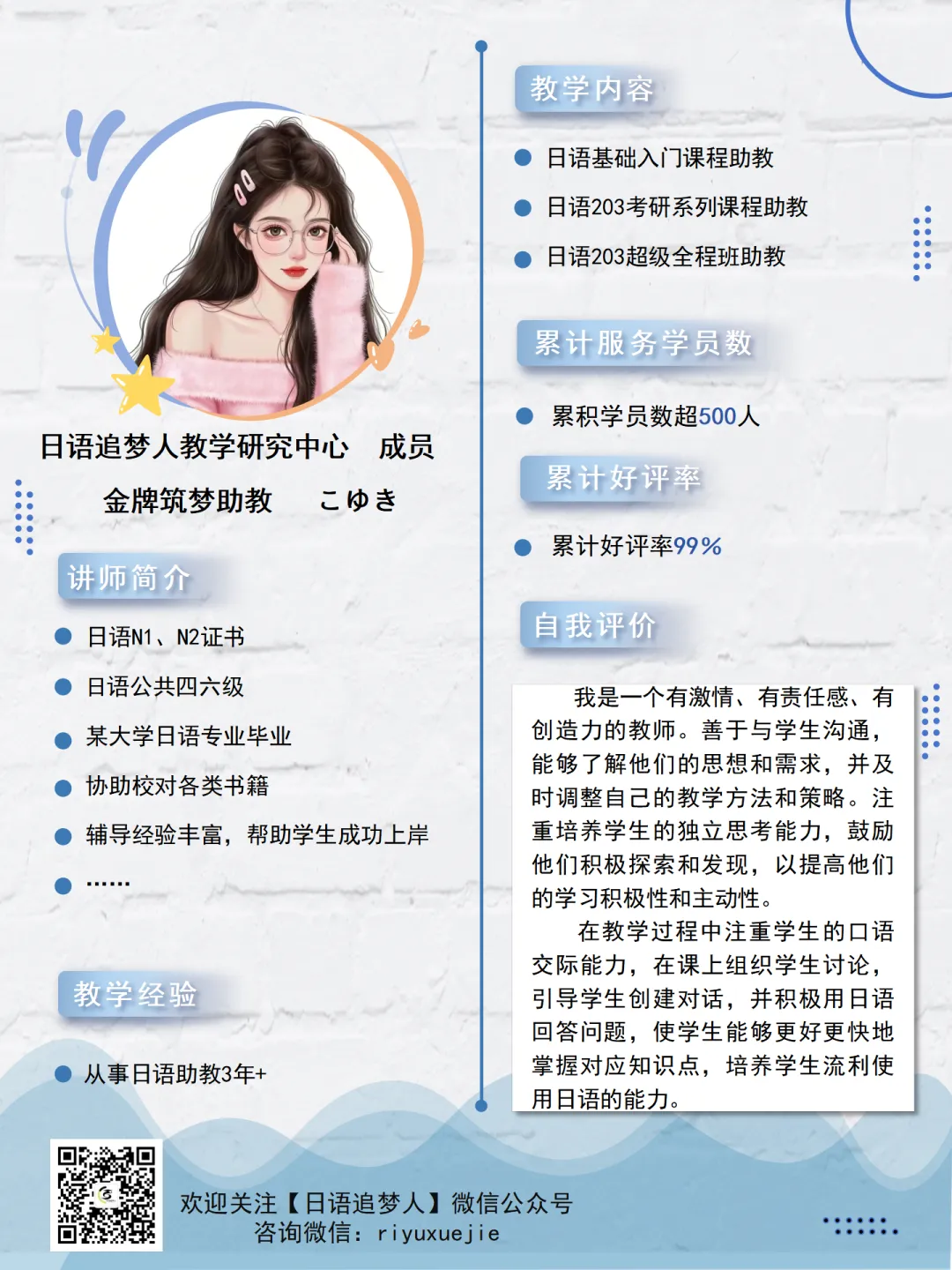 由日语追梦人讲师团综合制定科学高效的203日语学习方案,全程监督陪跑,直至考研结束。