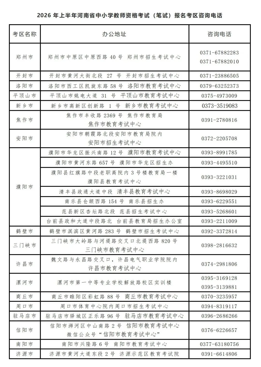 中小学教师资格考试(笔试)各考区相关联系方式见下表: