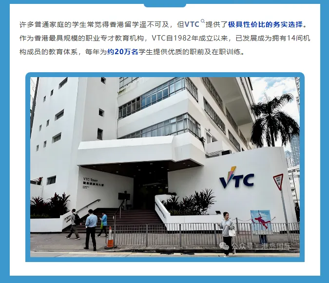 对于有志于走向国际舞台的内地学生来说,现在正是抓住VTC机遇,规划香港留学的最佳时机。2026/27学年招生已全面启动,勇敢迈出第一步,你的香港职场梦可能就在这里启航!