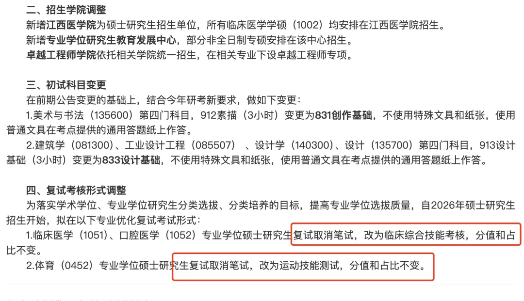 此外,还有南昌大学也官宣了临床医学、口腔医学及体育三门专业今年取消复试笔试。