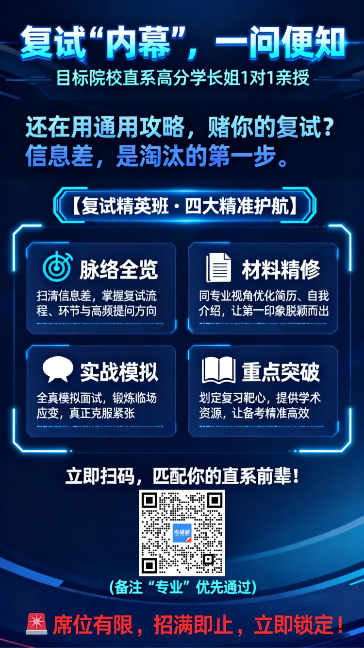 梳理复试脉络:了解该专业往年复试的一般流程、环节设置及常见问题方向,帮助你构建更清晰的备考框架。