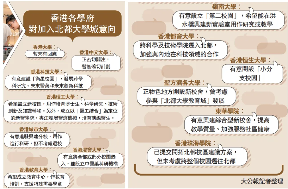 在此基础上,香港特区政府明确提出打造国际高等教育枢纽,推进“北都大学教育城”建设。