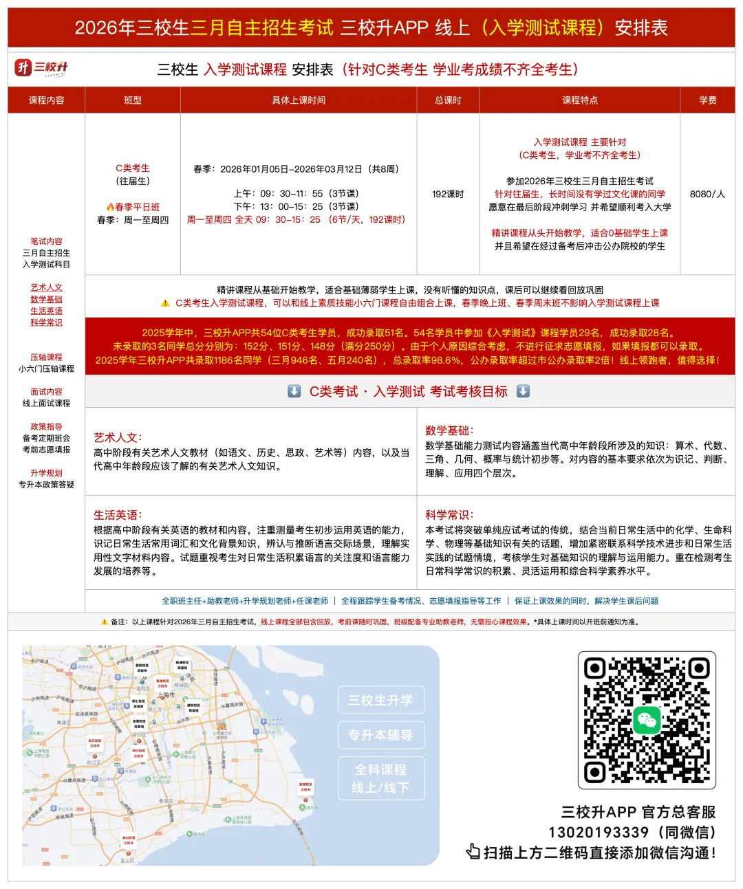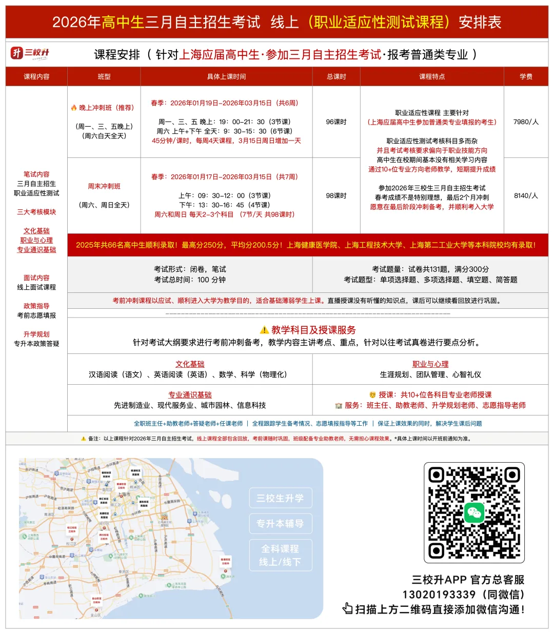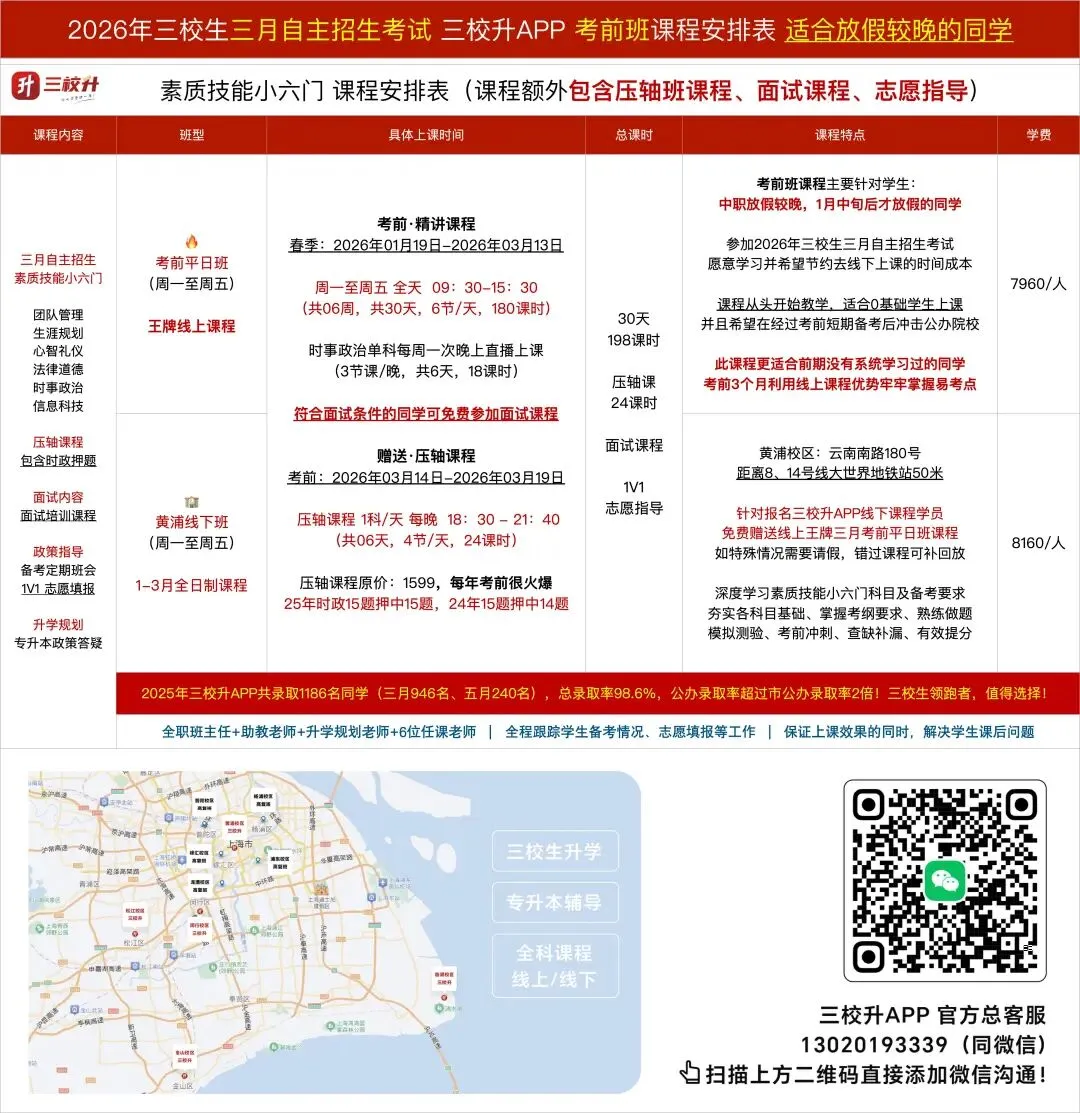 明日陆续开课!2026年上海三校生升学考试(三月自主招生、五月三校生高考)课程安排表