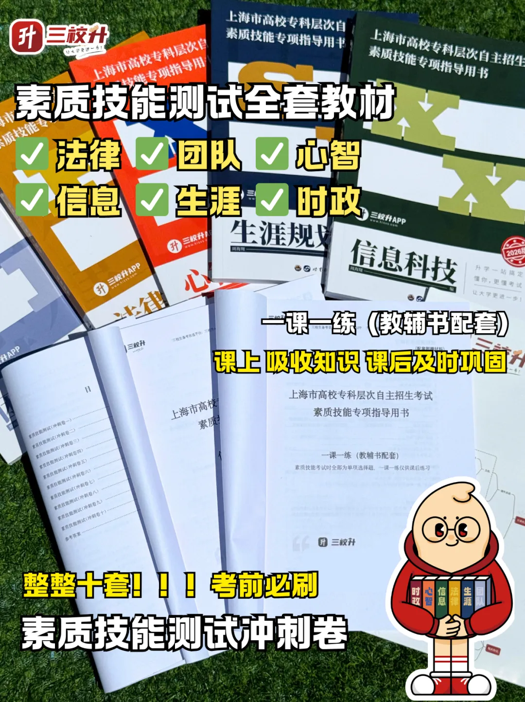 三校升APP研发的教辅书籍每年超8000+学生备考使用。所有课程、教材均由我校核心教研团队根据多年教学教研经验研发,并依靠相关专业的出版单位体系共同创作完成。