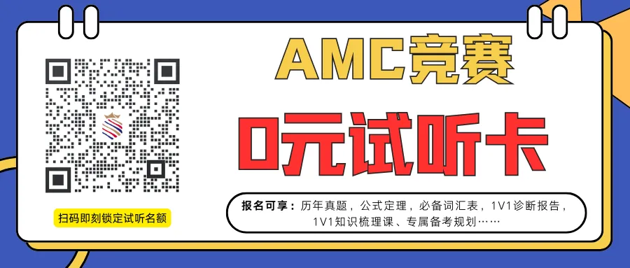想要更多真题练手,为大家准备了【AMC系列备赛资料包】:内含历年AMC真题及答案解析,AMC考察公式知识点整理资料,有需要的同学扫码领取!