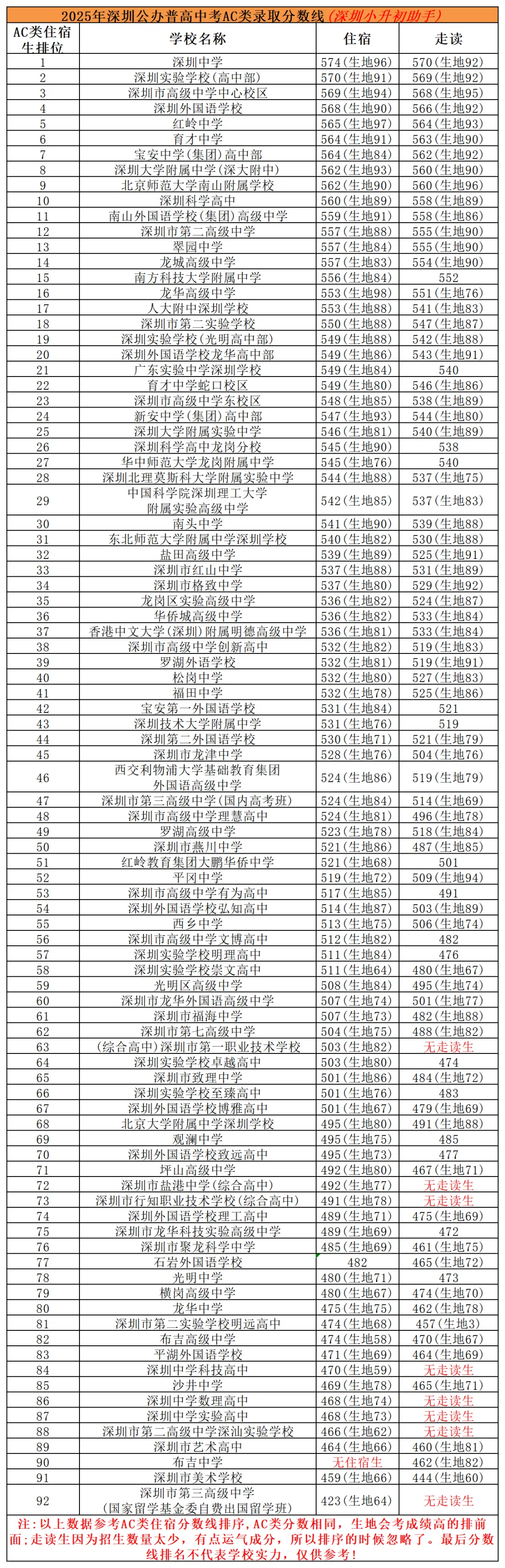 2025年深圳92所公办高中录取分数线排名!
