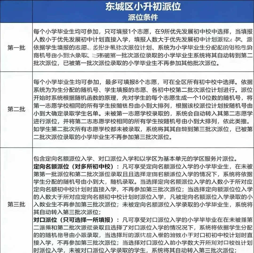 东城区小升初政策解读:三批次派位怎么填?这篇讲透!