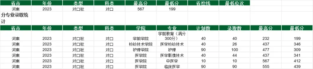 1、仅面向河南省招生,采用平行志愿方式投档,按照河南省教育考试院统一设定的投档规则,根据专业类别进行录取。在省教育考试院投入档案中,按照“分数优先”原则,依据各专业计划,按照考试成绩从高到低择优录取;若录取和分专业时出现投档成绩相同的考生,普通类专业依次按专业课成绩、专业基础课成绩、数学成绩、语文和英语合卷成绩排序录取;教育类专业依次按时事政治和幼儿教育学合卷成绩、数学(幼师数学)成绩、语文(幼师语文)成绩排序录取。