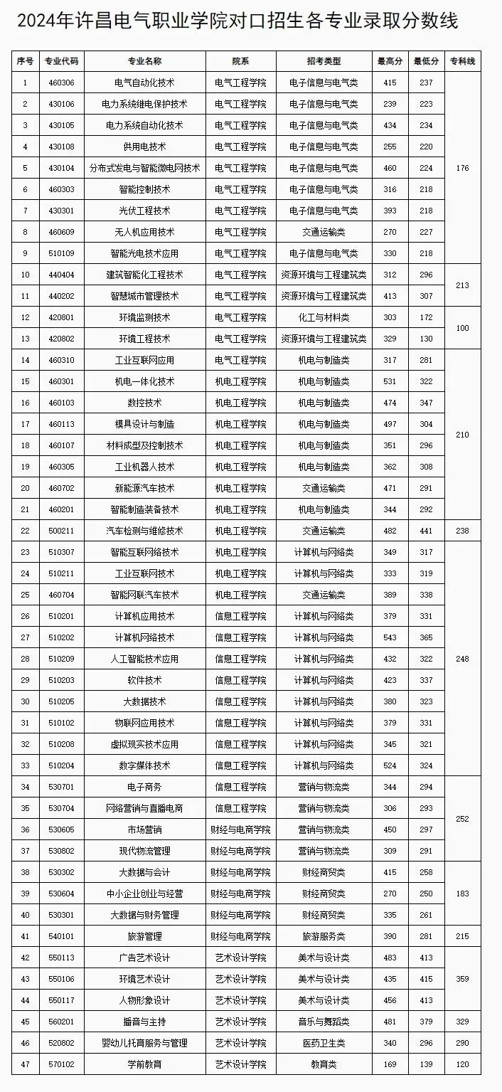 许昌电气职业学院现开设电气自动化技术、机电一体化技术、供用电技术、数控技术、计算机应用技术、计算机网络技术、电子商务技术、电力系统继电保护与自动化技术、模具设计与制造、材料成型与控制技术、机电设备维修与管理、汽车检测与维修技术、新能源汽车技术、经济信息管理、工程造价、会计、旅游管理、广告设计与制作、播音与主持、空中乘务等54个专业。全日制高职在校生、全日制技校生、开放教育注册生18850人。
