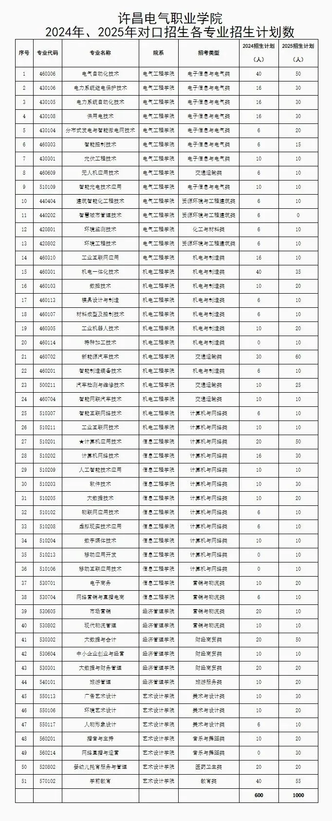2025年许昌电气职业学院招生计划1000人,