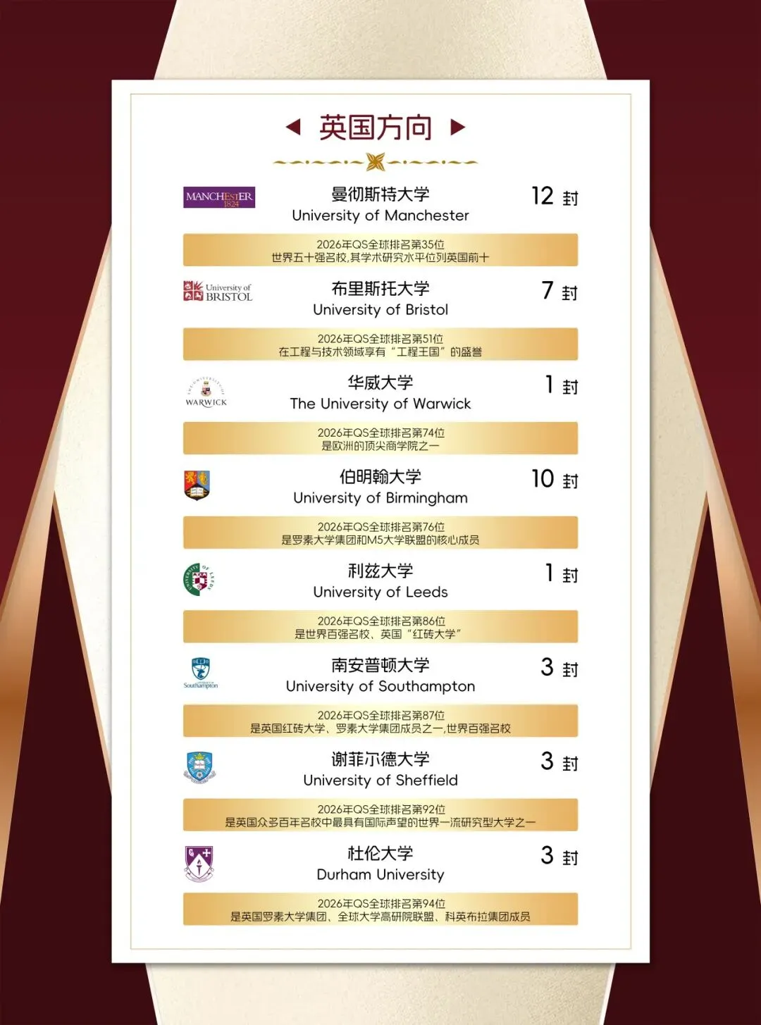 此前,2026 届学子就已斩获 77 封世界名校预录取,涵盖英国帝国理工、伦敦国王学院、曼彻斯特、澳洲墨尔本大学等一众顶尖院校,目标院校录取成功率高达 95%!