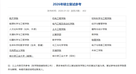哈尔滨工业大学航天学院、机电工程学院等部分学院已出复试参考。