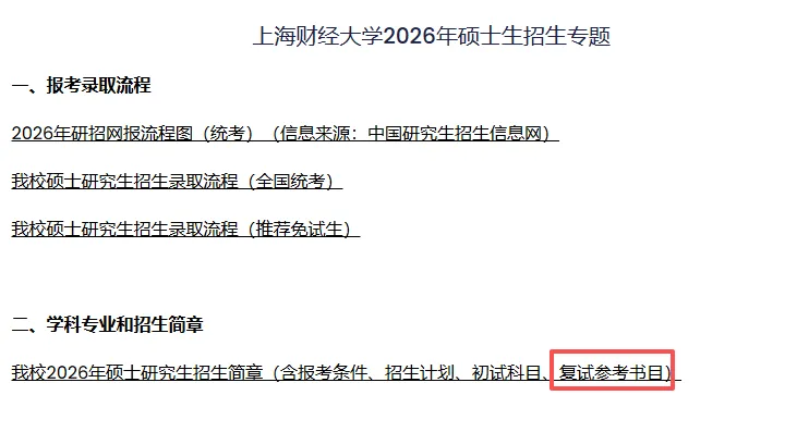上海财经大学26考研招生简章中同步给到了复试参考书目。