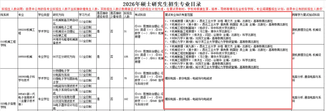 杭州电子科技大学同样在26考研招生专业目录中给出了复试专业知识考查范围。