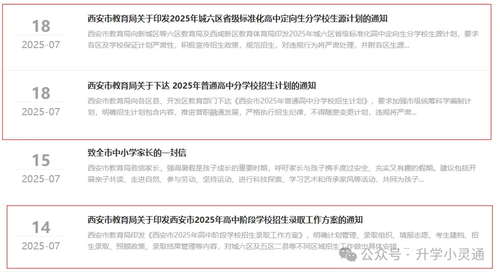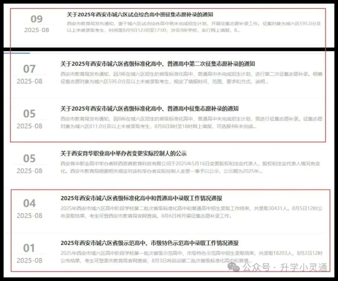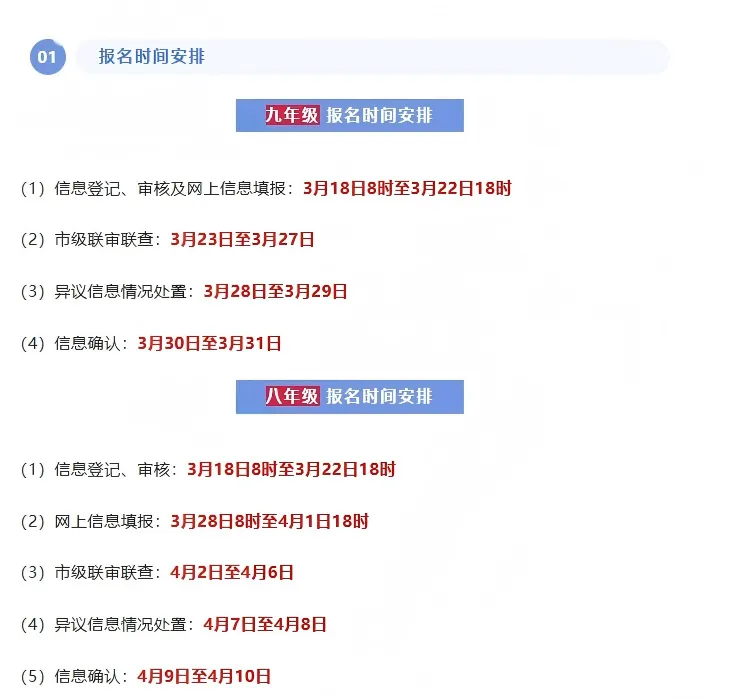 ②中考报名:2025年中考报名时间为3月18日至3月22日。对中考报名政策还不明白的家长可查看4月会安排中考体育考试:2025年中考体育考试是4月7日至5月9日。2025年西安中考体育的分值比例、考试项目和项目分数有了重大调整(2026届西安中考体育政策大概率是延续2025年的):(1)2025年体考分值划分为:体考60分=平时成绩30分+统一考试30分,平时分占比提高,统一考试分值从45分下降到30分(2)新增4个小项目:项目1增加4分钟跳绳,项目3增加后抛实心球,项目4增加乒乓球技能和武术技能增加了跳绳、后抛实心球、乒乓球、武术项目;(3)部分项目的满分和及格标准均有所降低,更有机会拿到单项满分;(4)25年成绩计算为=平时成绩30分+现场测试最低分18分(60×30%)=48分,有了保底最低分。(5)免试分值调整,其他免试的考生体育与健康考试成绩按45分记入初中学业水平考试总分。4月份也会发布特长生报名布通知。有特长生报考资格的考生要注意。2025年特长生考试时间为5月24日。2025年西安特长生招收方案&报名审查及市级专业考试特长生全流程:截止特长生报名时间前获得特长生资格→特长生招生方案公布(4月)→特长生报名(4-5月)→特长生考试(5月)→特长生资审合格名单(5月)→特长生考试合格名单公布(6月)→特长生意向名单公布(7月)。注意:以上皆为25年时间线,26年时间线具体关注官方通知。物理、化学实验操作考核是初三下学期5月份考;生物实验操作考核、信息技术操作考核是初二下学期5月份考核。考核不难,但是结果很重要。根据现行中考招生录取资格要求,成绩均达到C等级以上(含C等级)的考生,方具备普通高中录取资格。理化生实验操作考核、信息技术操作考核这4科成绩是中考同分筛查依据之一备考一年,真正的三天中考大考终于来临了。2026年中考考试时间预计在:2026年6月21日-6月23日。中考前,学校会组织统一看考场,提前熟悉,学校不安排的家长就要带着孩子去熟悉一下考场,包括楼层,卫生间以及医护室等等。中考持续三天,考前记得保持合理作息和清淡饮食,考试时要沉着冷静,不求超常发挥,力求发挥出自己的正常水平。中考考完当天,学校会组织孩子估分。估分结束后,家长和孩子就可以对比估分,大致筛选学校了。总结:3-6月份:83中、85中、一中、三中等特色班登记重点学校意向登记,其中,83中春笋创新实验班和85中国防人才预备班是考试选拔登记;其它学校基本上只是意向登记,不一定有选拔。1、中招计划公布:公布公民办高中学校中招计划,定向生招生计划。一般情况下,中考成绩公布当天或者前一两天,会发布2026年中招计划、定向生计划;2025年西安中招计划、定向生计划和高中招生方案通知2、中考成绩查询:2025年中考成绩查询时间为2025年7月18日中午12点。(1)历年在这段时间,西安大型中招会会举办两场,一场是华商报组织的,在中考出分前。一场是中考出分后,志愿填报三天的前二天,西安市教育考试中心组织的中招会,但各区也会举办;(2)高中学校在这一时间段会有校园开放日,接待家长咨询,一直持续到志愿填报结束。4、志愿填报:2025年中考志愿填报时间为城六区7月19日8:00至21日18:00;其他各招生单元考生网上填报志愿时间为7月22日8:00至24日18:00。往年会在8月初分两批次公布录取结果,大家可以通过教育局官网的西安市招生考试服务管理平台查询录取情况。录取结果公布后,各校会以短信、电话、公众号公布录取名单等各种形式通知家长,并告知后续到校报到、暑假作业、军训等安排。各校录取通知书等信息一经发布,本公众号会第一时间汇总,并在2026年中考家长群更新。如果您觉得这篇文章有帮助,欢迎点赞、收藏并转发给更多有需要的人!