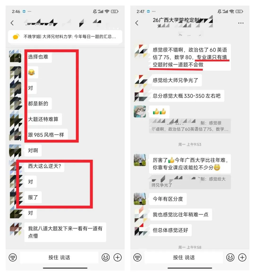 26年广西大学题目也变难很多,但是同样考广西大学,不同学生的反馈完全不同。