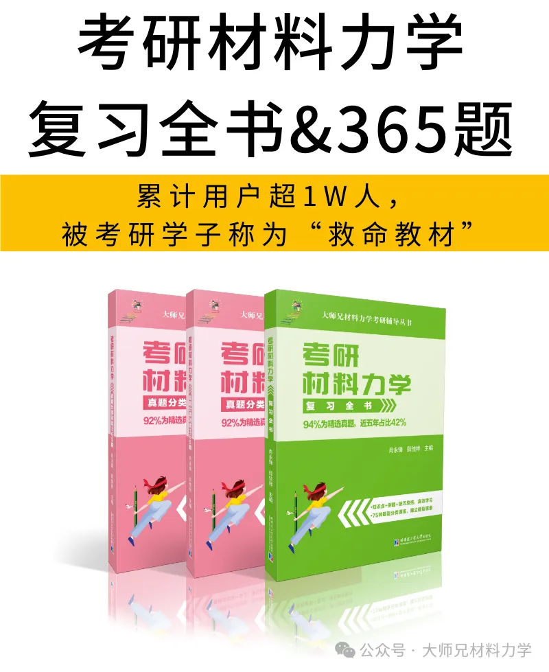 并不是想催 27 考研的同学现在就全面开始复习材料力学,而是想帮大家解决一个更底层的问题:让大家复习材料力学的时候,一开始就走在正确的路上,而不是走弯路。原价59.8元的《材料力学考研复习全书》+《365题》,现在只需29.9元。- 第3讲《截面几何性质》(包含静矩与形心、惯性矩、极惯性矩、惯性积、平行移轴公式、转轴公式、主惯性轴)