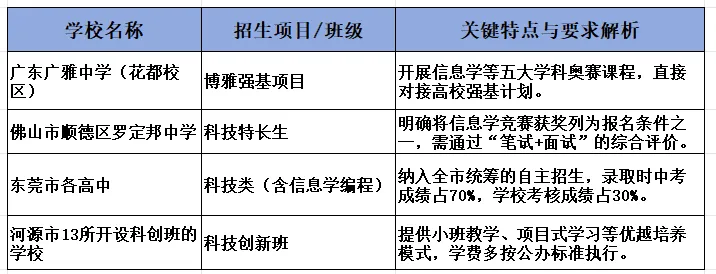 广东省内多所重点中学已推出各具特色的科技特长生招生计划,为具有信息学特长的学生提供多元选择。