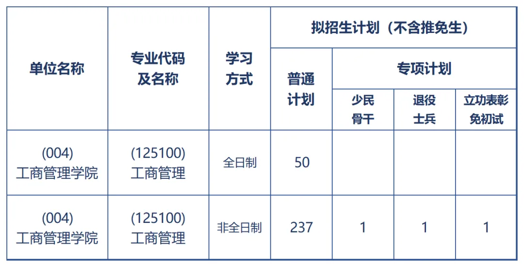 我院2025年MBA拟招生计划请查看以下表格。