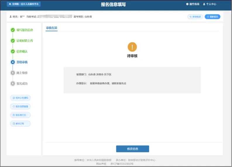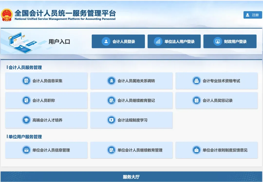 若同学已经确认好报名资格、准备好报名资料,那可以登录“全国会计人员统一管理服务平台”及时完成信息采集。