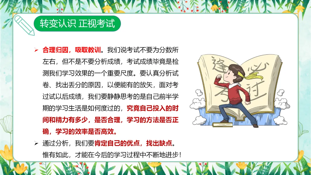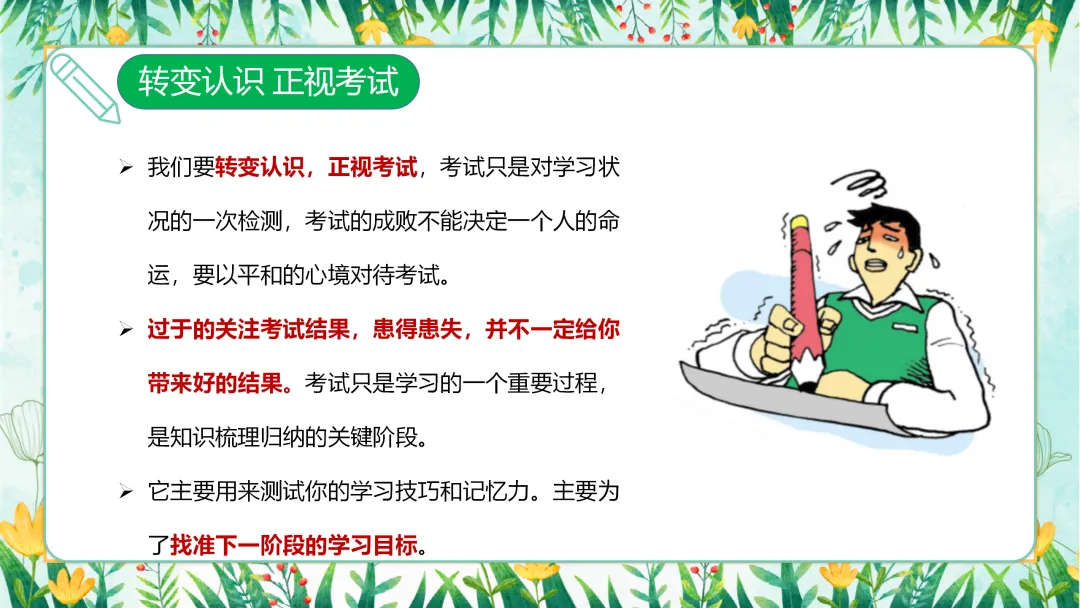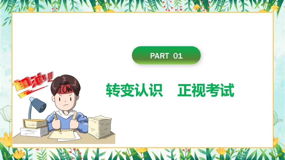 首先,我们进入第一部分——转变认识,正视考试。在备考的过程中,正确认识考试的本质和意义至关重要,它将直接影响我们的备考心态和学习效果。