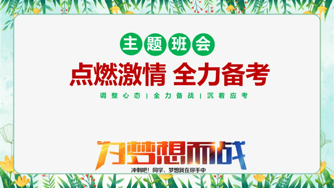 各位同学,大家好!今天,我们齐聚在这里,召开一场意义非凡的主题班会——“点燃激情 全力备考”。距离考试的日子越来越近,相信大家的心情既充满期待,又带着些许紧张。在这场班会中,我们将一同探讨如何调整心态、全力备战、沉着应考,为即将到来的考试做好充分准备。希望通过今天的交流,能够为大家注入新的动力,让我们以更加饱满的热情和坚定的信心迎接挑战。