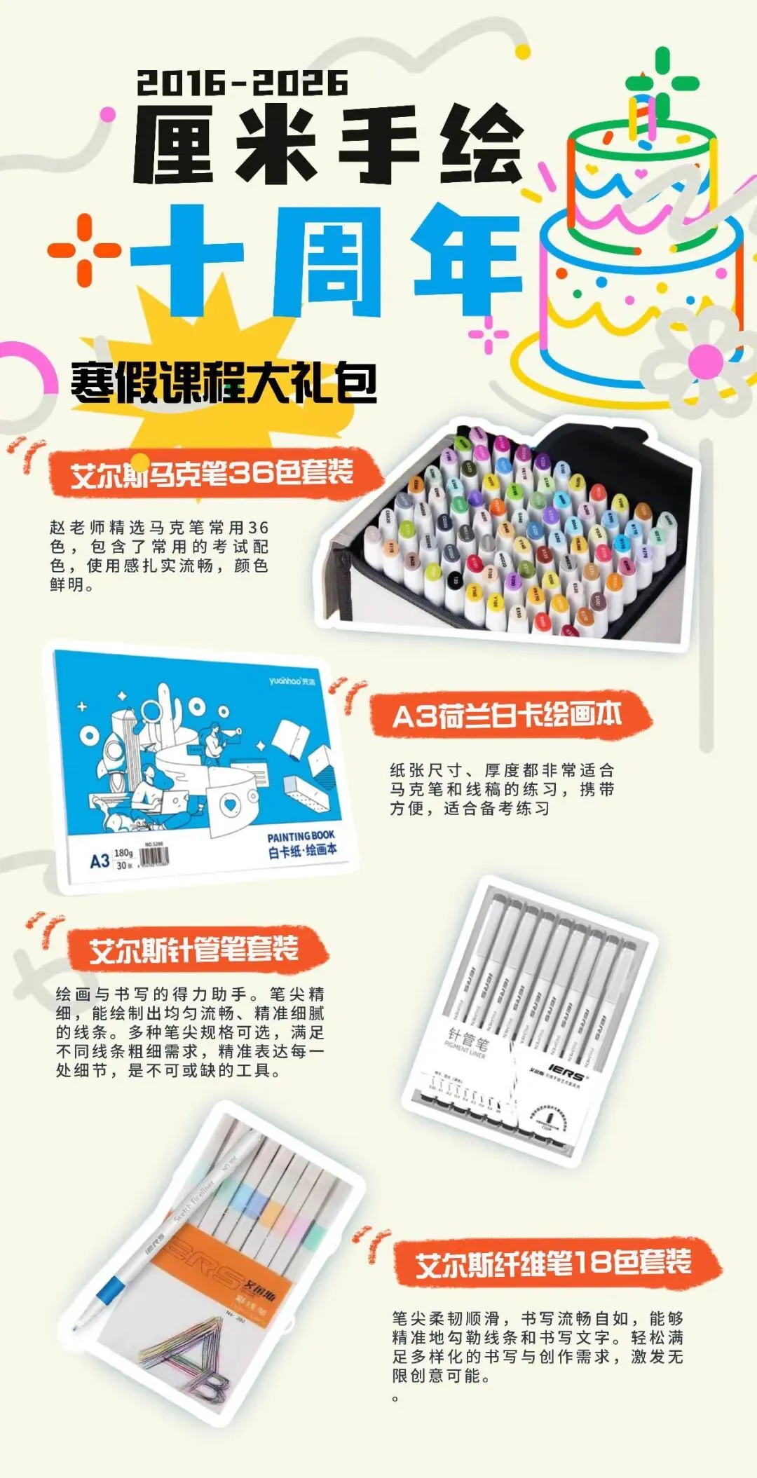 南京厘米手绘已经走过十个年头啦,今年我们为大家准备了十周年大礼包,只要报班即送。(各专业稍有不同)