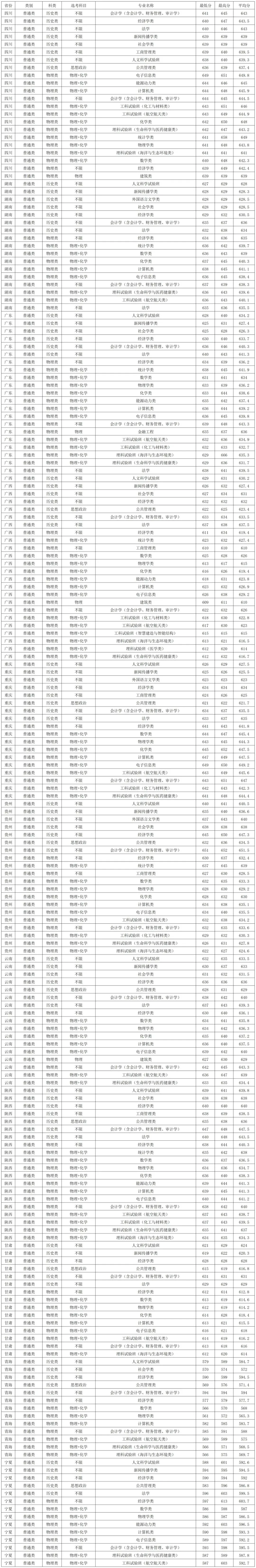 在福建本科批普通类物理类录取分数线较高的专业:统计学类646分、计算机类642分、电子信息类642分、数学类641分、能源动力类641分,最低的是公共管理类627分。