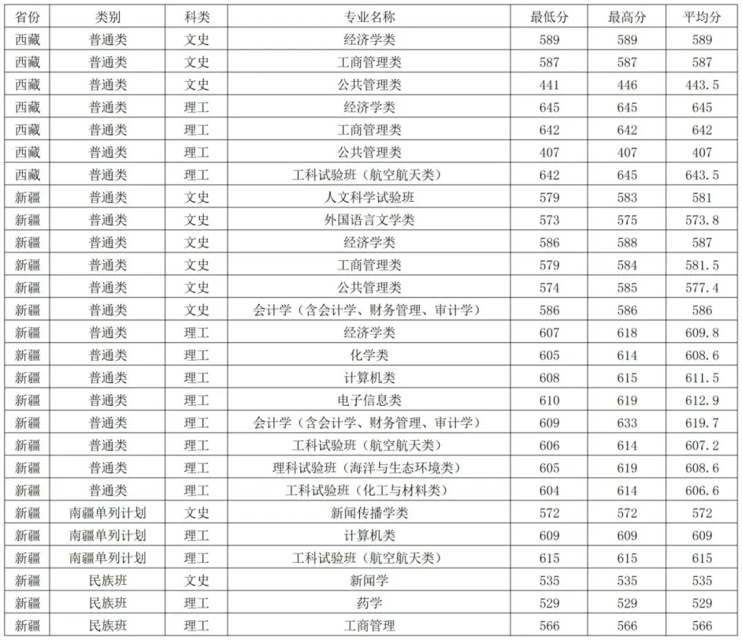 厦门大学2025年在西藏、新疆各专业录取分数线