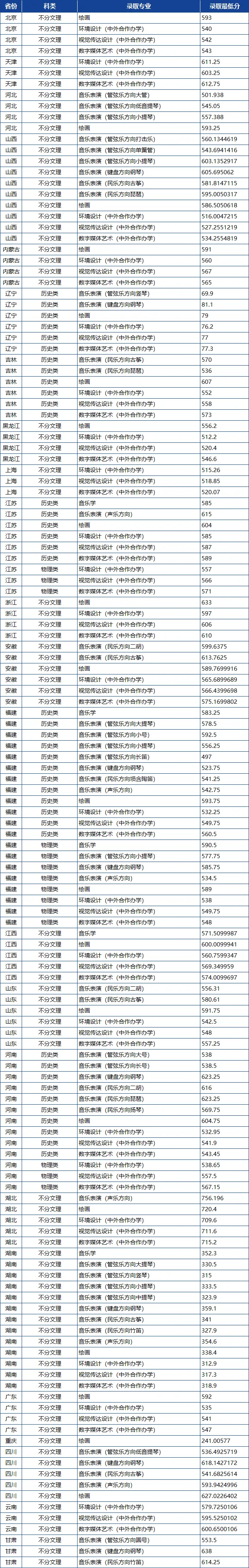厦门大学2025年艺术类在各省各专业录取分数线