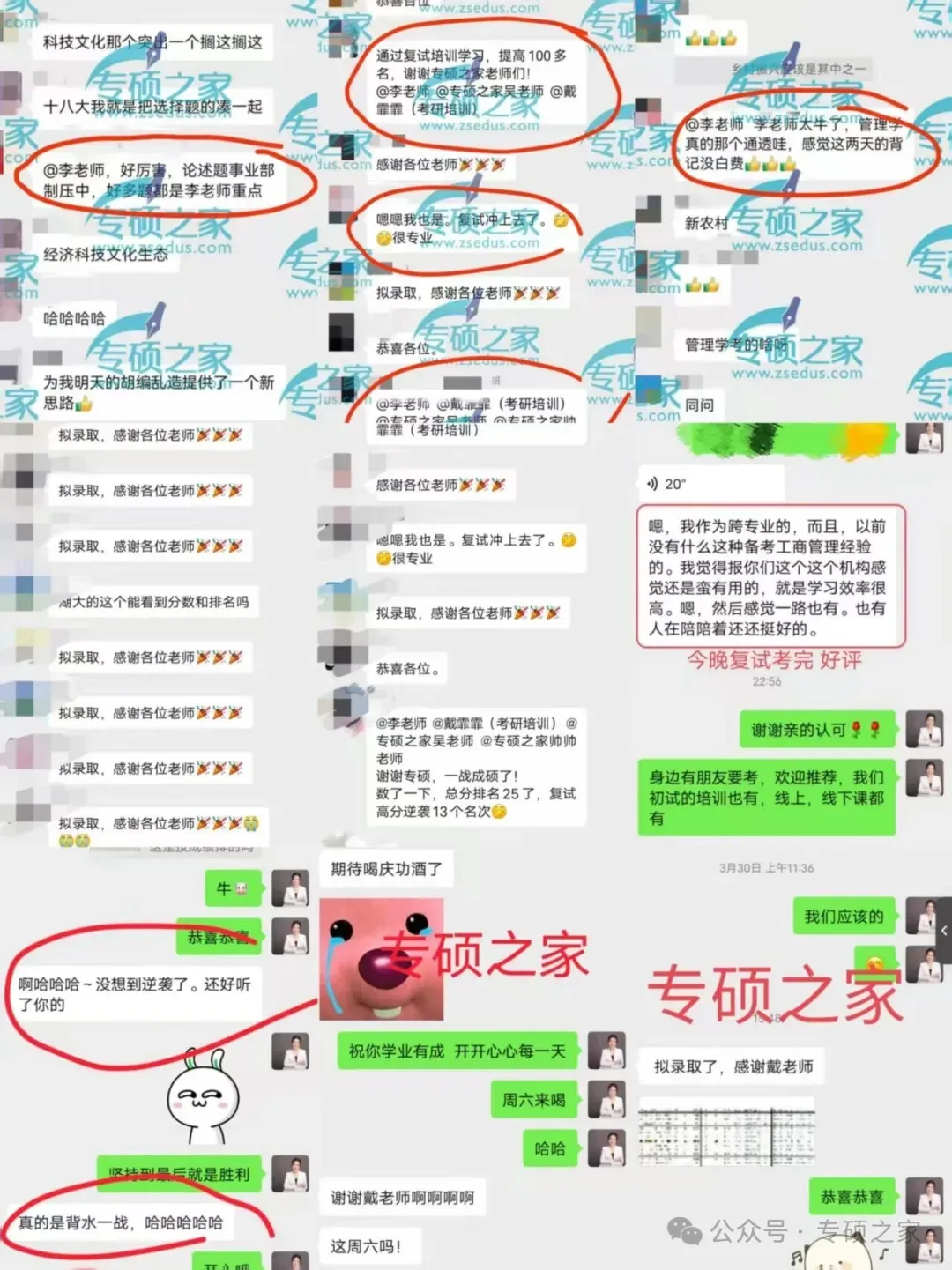 专硕之家往年复试培训课现场实录及学员好评押题部分展示复试培训班(线上及线下均有):随报随学,初试未上线,学费全退。 专硕之家是由中国公益创业研究中心扶持,国内名校(北大、复旦、湖大、中南、武大、华科等)硕士联合投资运营的考研培训机构。成立至今,在全国多个省市设有分校!为考生提供高质量师资课程辅导服务,并根据学员实际情况制定专属备考计划,陪伴学员上岸!扫码添加免费咨询考研: