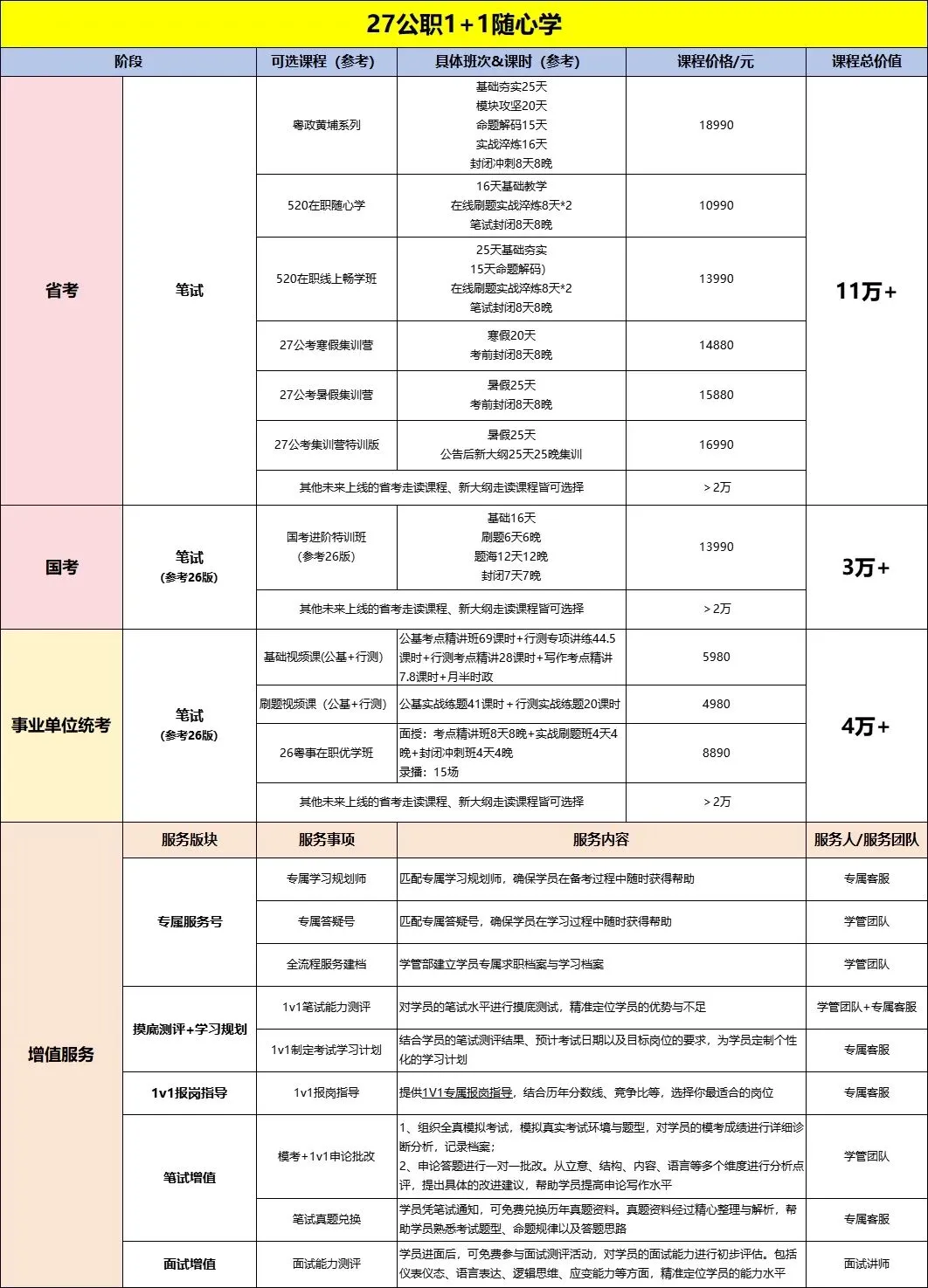 可选考试:27年省考+1次考试(27年国考、27年事业单位统考、26年事业单位散考、社区辅警、国企、银行等)