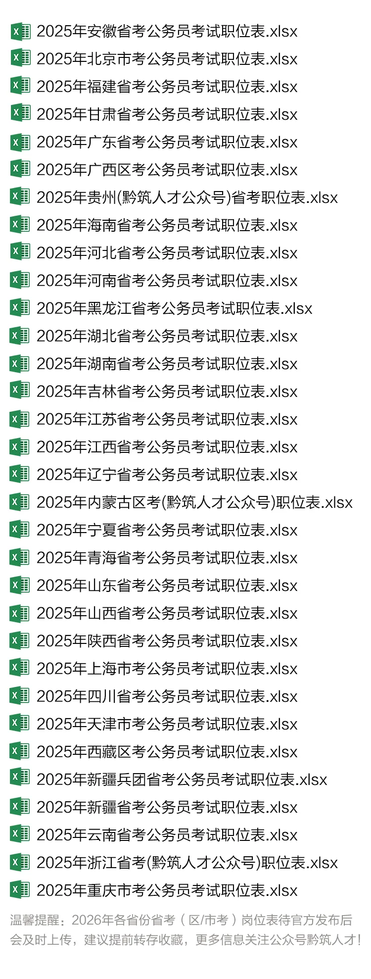 ✅下载2025-2026年全国各省省考职位表.xlsx