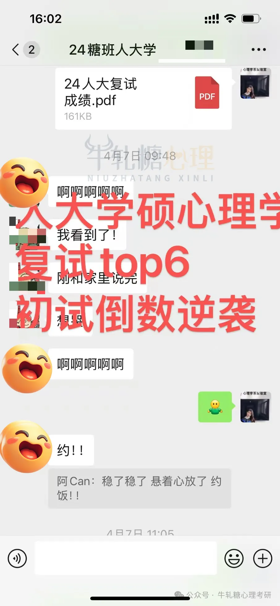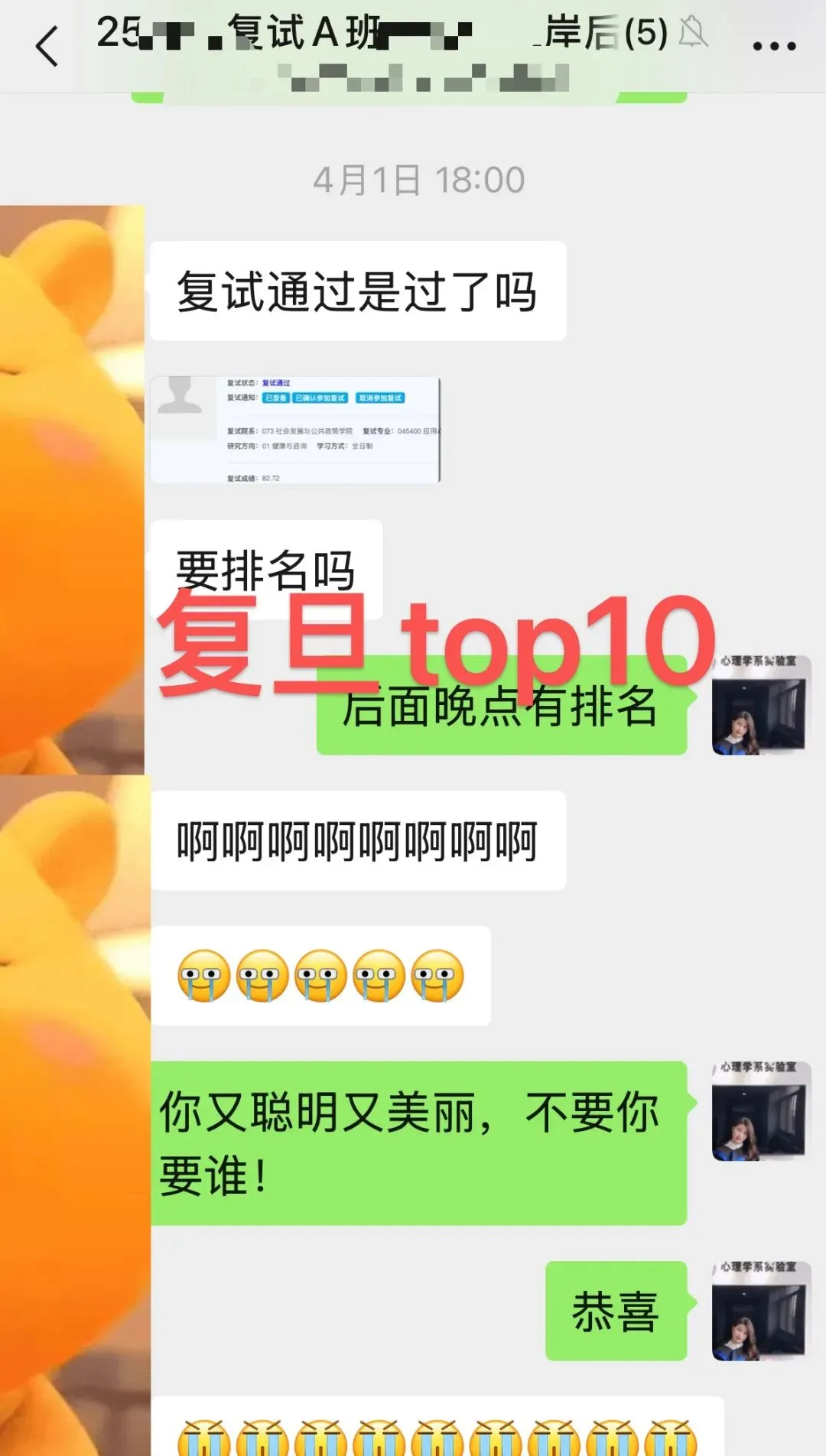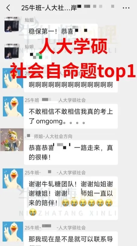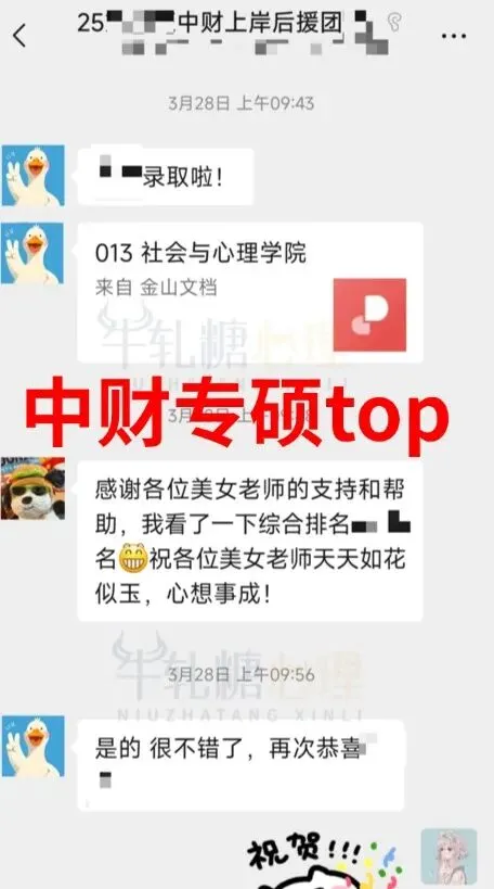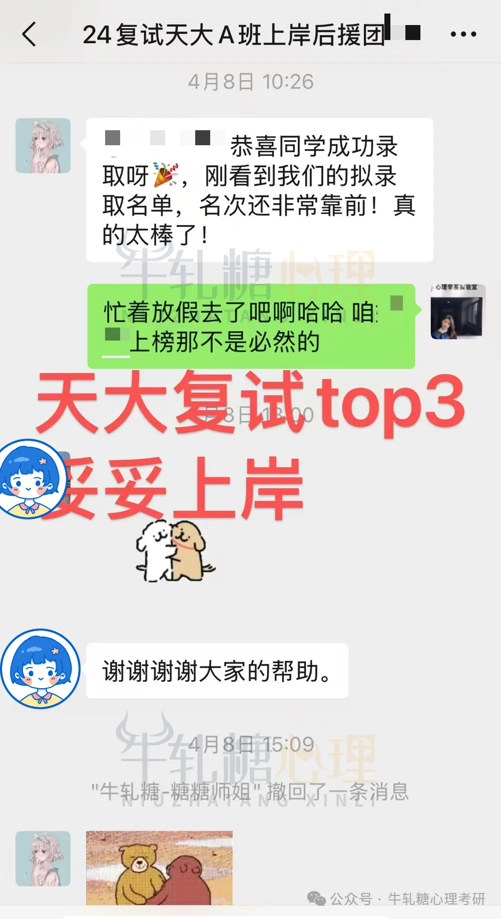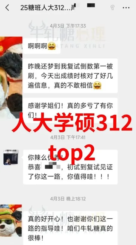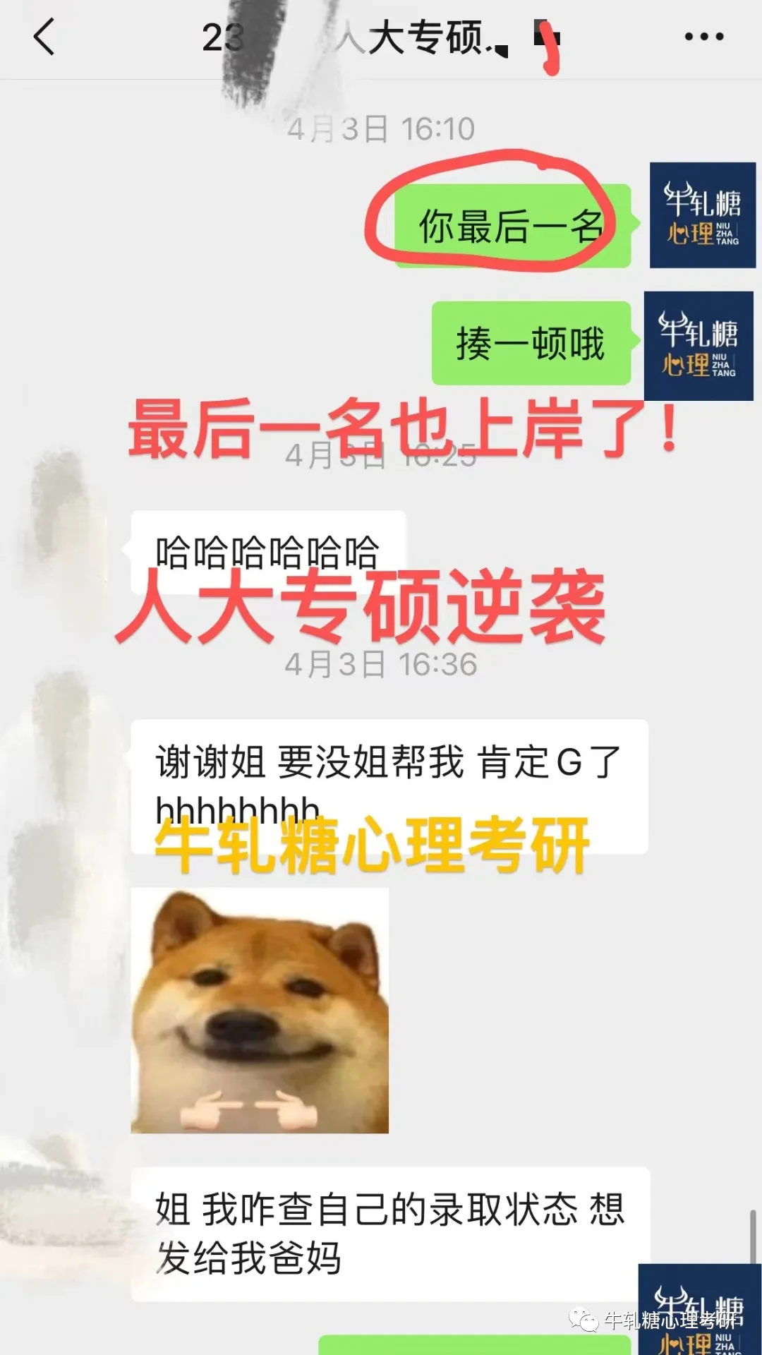 牛轧糖也有幸助力了:人大专硕进复试倒数第一名成功录取、倒数5名逆袭中位、北体艺术生师姐复试top、人大学硕进复试倒数第一成功录取,华东师大学硕四非本科逆袭、天大四非本科逆袭top、......