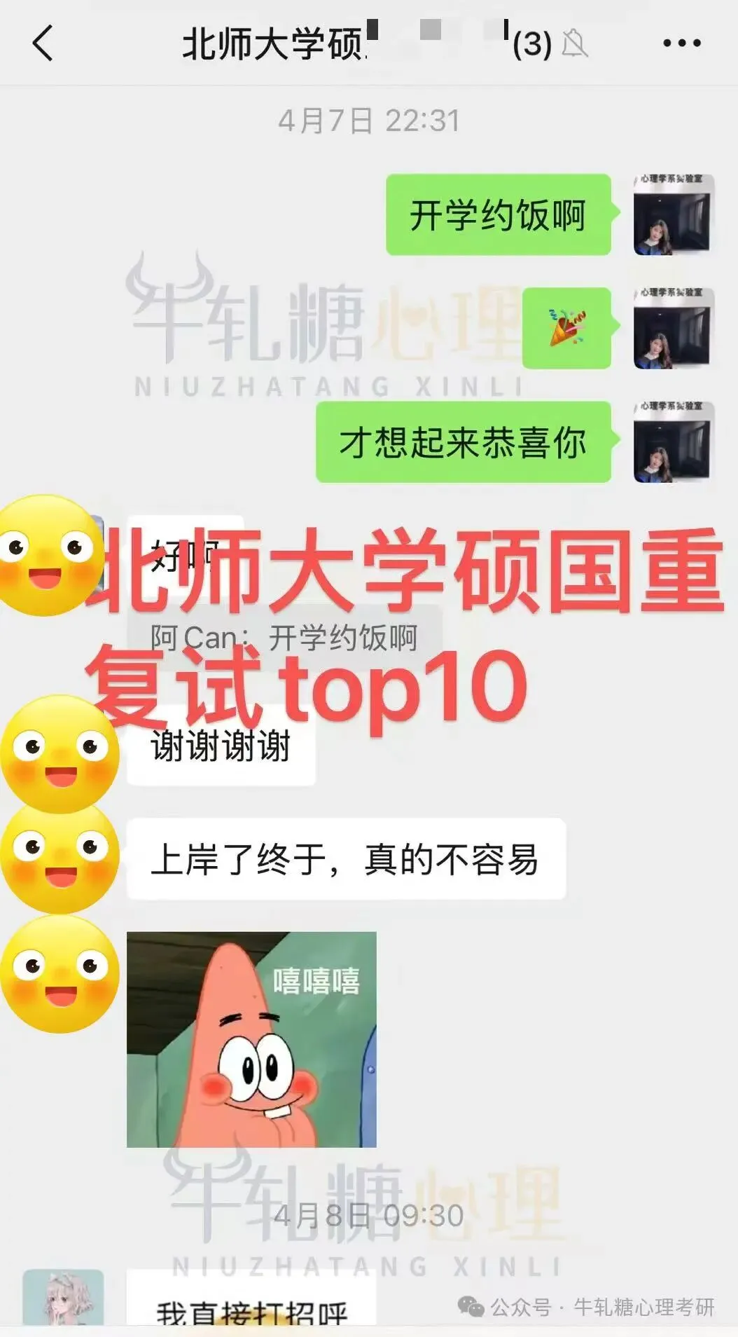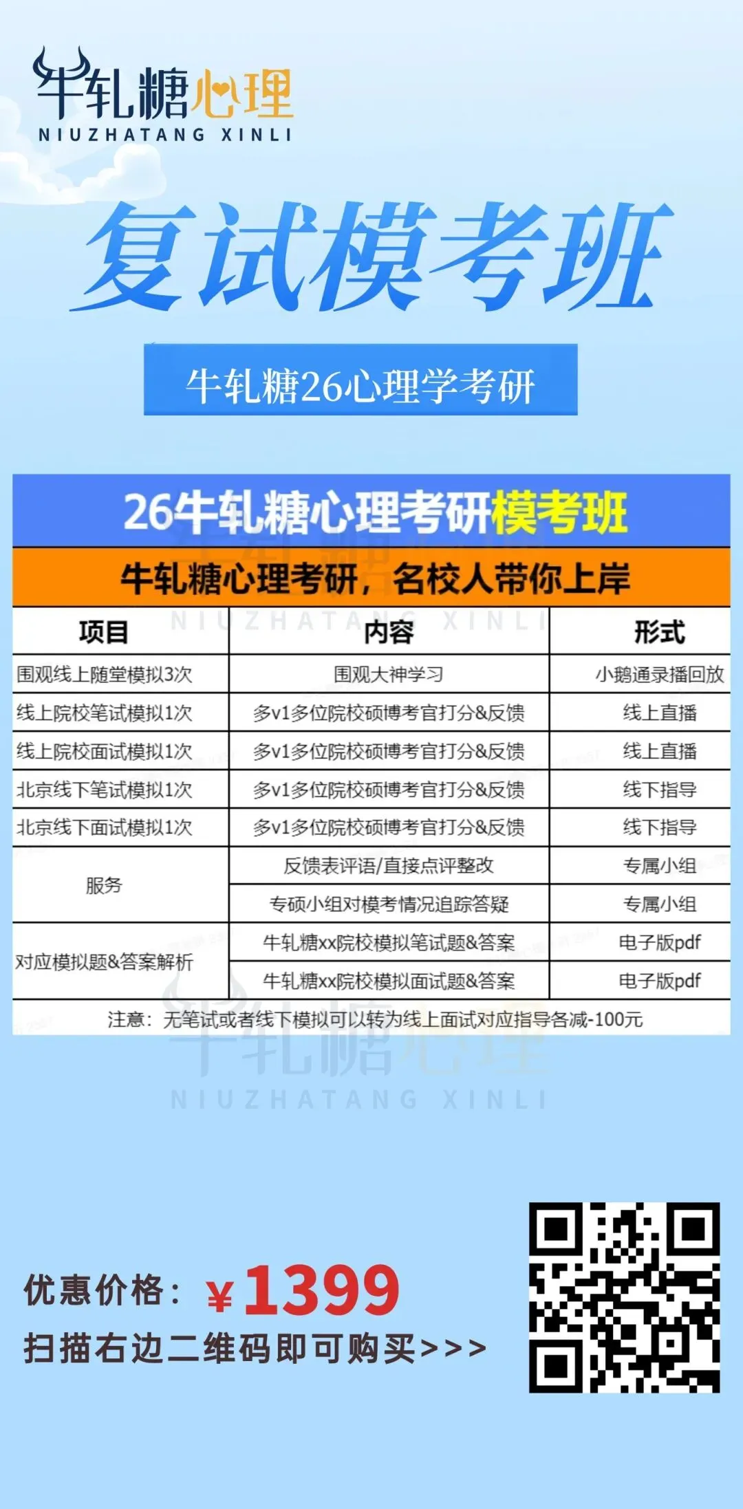 牛轧糖去年是心理学辅导唯一家推出线下复试班的,助力了师兄师姐们上岸,今年牛轧糖将延续线下模拟!