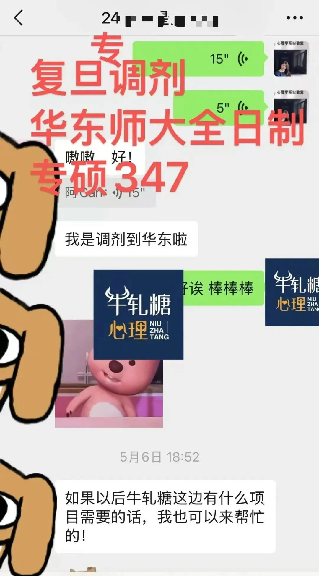 牛轧糖也很骄傲:25届牛轧糖复试学员,除了人大学硕1名学员和华东1名学员不愿意调剂故而没走,其余全部上岸!(含调剂)牛轧糖也很开心:25届第一志愿初试没过校线的小伙伴,有幸调剂985全日制:华东师范大学专硕4名211学硕/专硕全日制:陕师大5名、南昌大学1名、安徽大学....调剂双一流学硕全日制:北语、深大、首师大、杭师、福师大、山东师大、安徽中医药大学等若干....