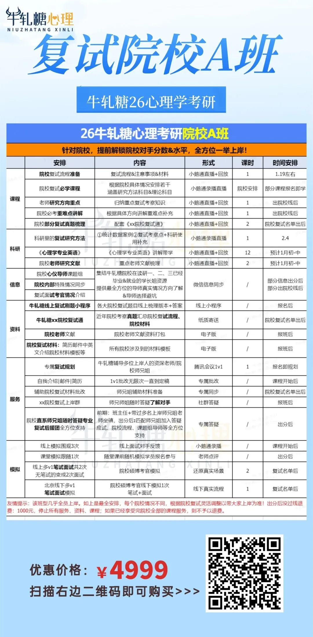 ②院校复试必学课程&重难点讲解:根据院校具体情况安排课程。北师大国重:认知神经科学、人大:心理学研究方法、经济心理学、认知神经科学、中央财经复试指定:经济心理学、社心.....